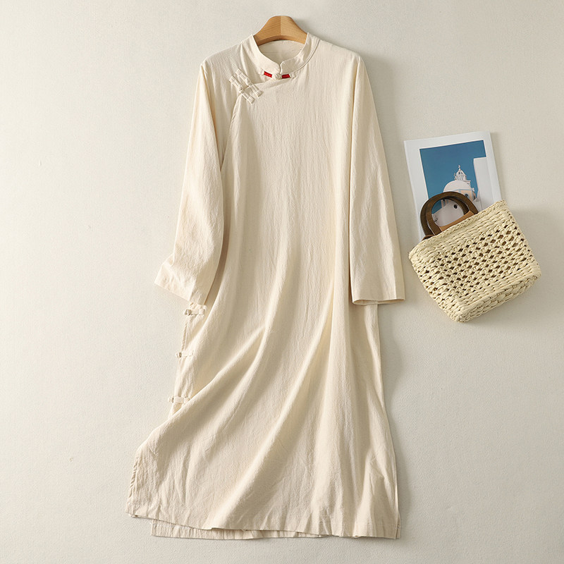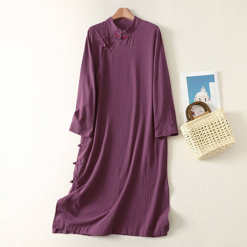 新中式连衣裙秋季新款复古国风禅意长裙子盘扣改良旗袍裙中国风
