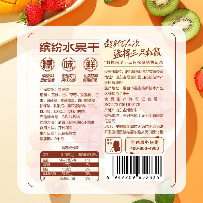 【三只松鼠_缤纷水果干100g】
