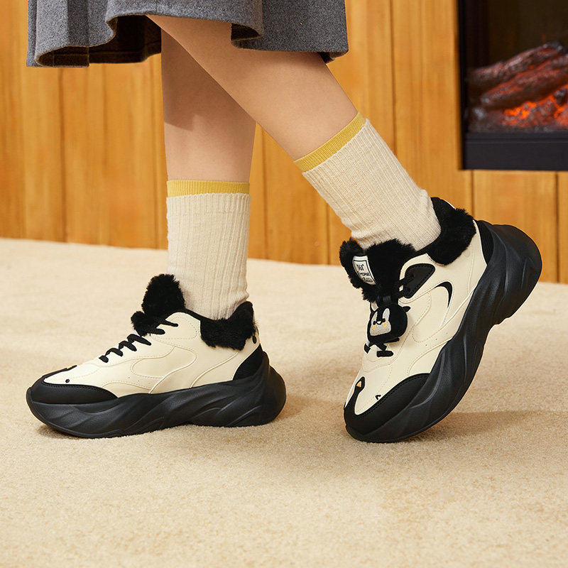 企鹅鞋361运动鞋女2025冬季加绒保暖棉鞋防水防滑休闲增高鞋子女