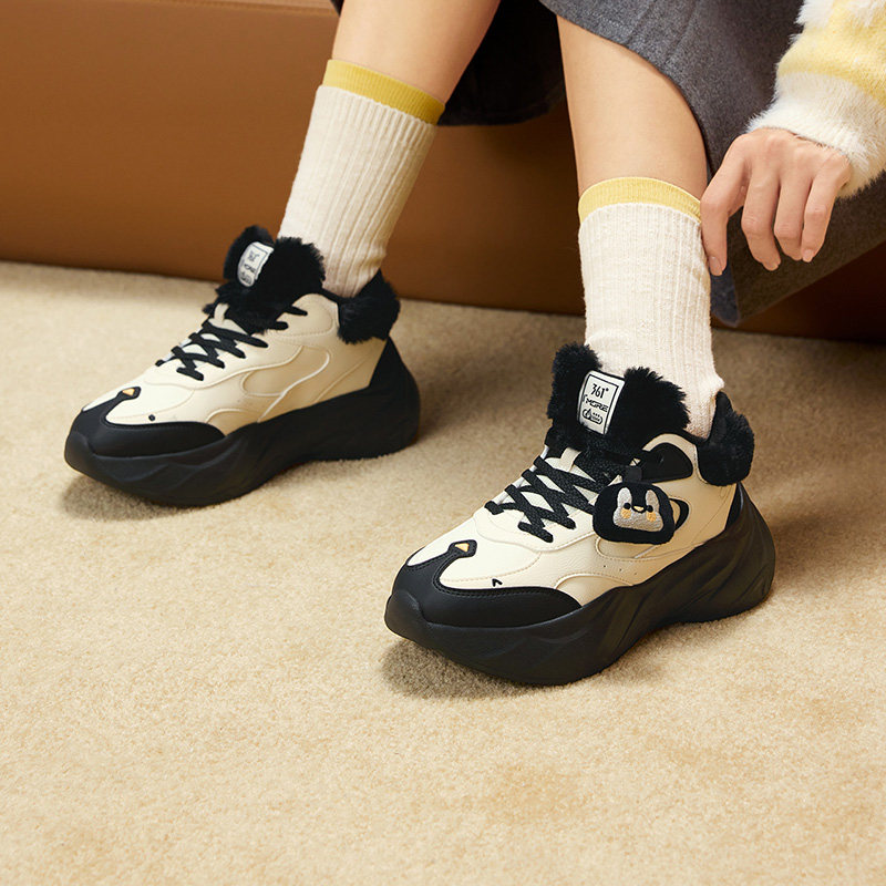 企鹅鞋361运动鞋女加绒保暖棉鞋