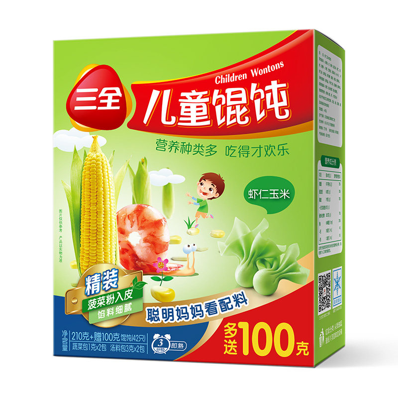 三全儿童水饺馄饨猪肉嫩青菜虾仁玉米珍味三鲜多口味组合装