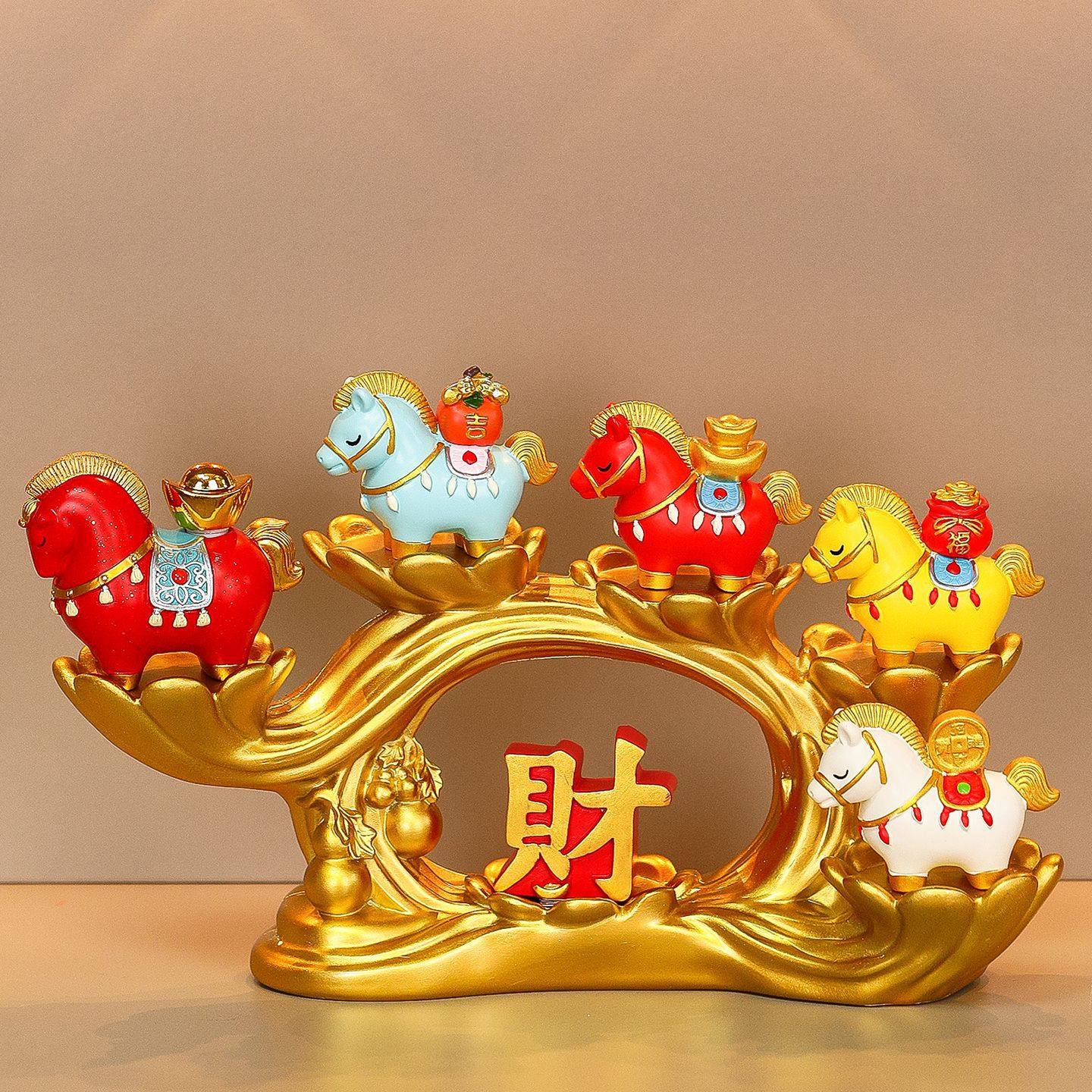 新中式金马驮财马上有财国潮马套装马年礼品玄关摆件新年喜庆装饰
