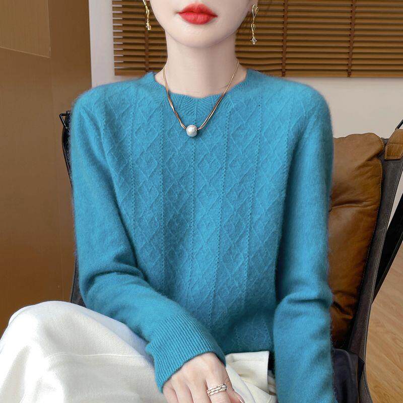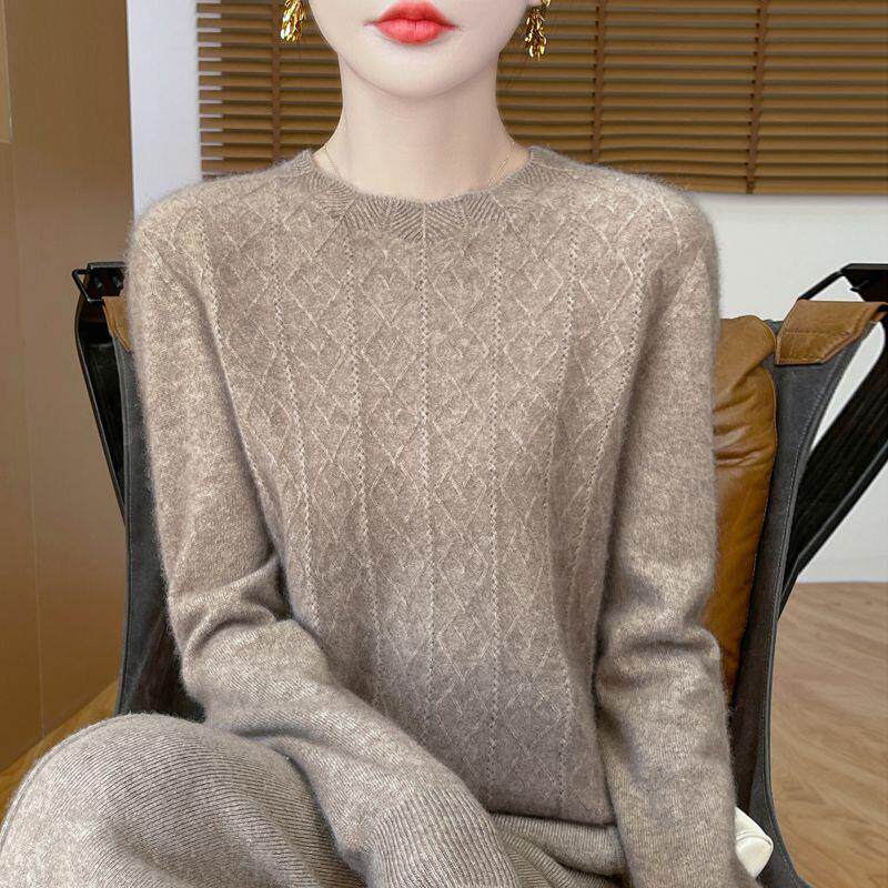 鄂尔多斯市春秋圆领羊绒衫女时尚洋气镂空针织打底衫宽松百搭毛衣