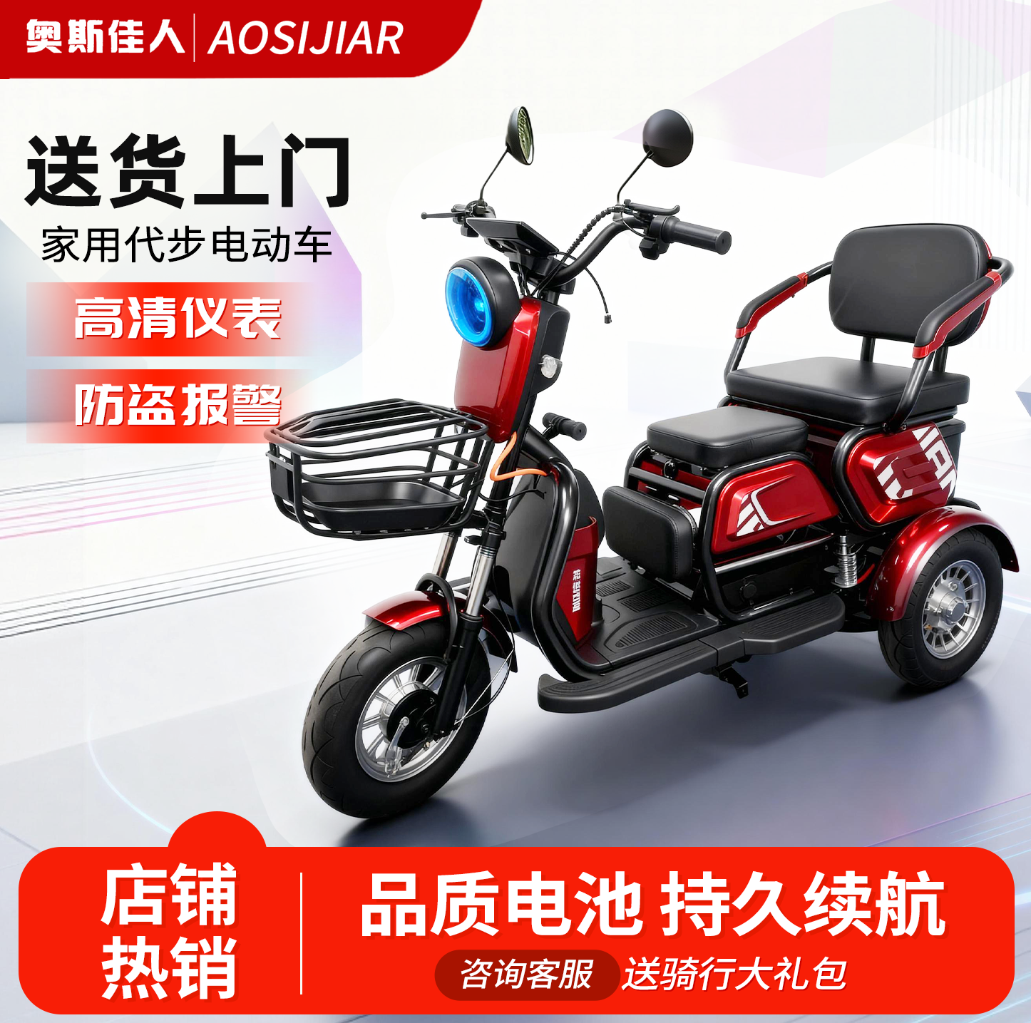 新款电动三轮车家用轻便小型老年人代步车亲子女士接送孩子电瓶车