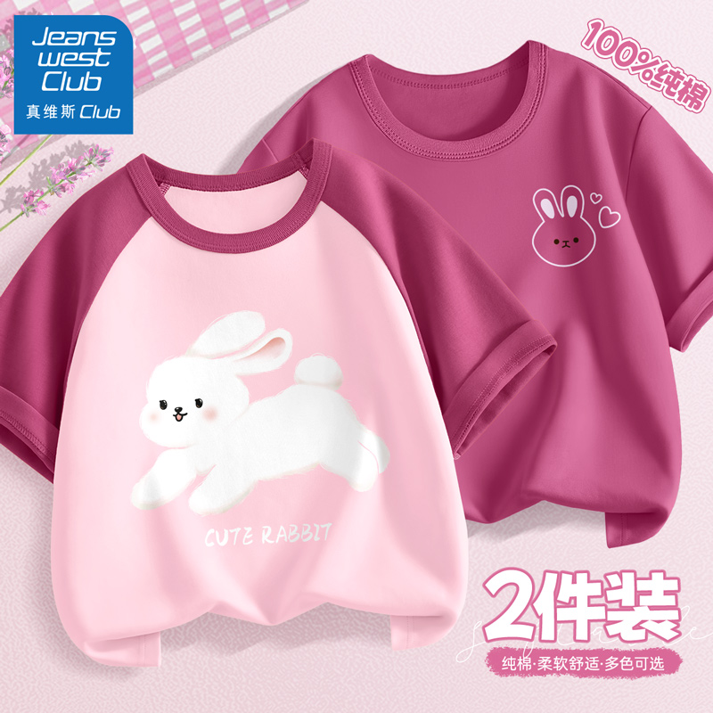 真维斯club儿童短袖t恤2025新款女童纯棉夏装女孩洋气圆领上衣薄