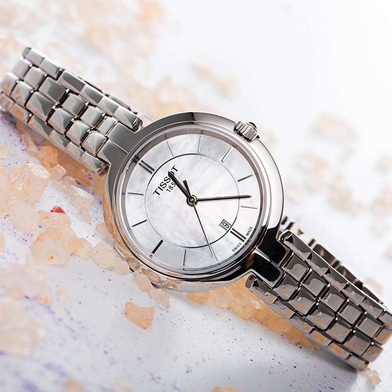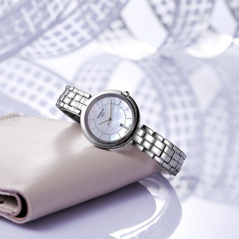 Tissot 天梭女弗拉明戈系列石英钢带贝母表盘女表正品