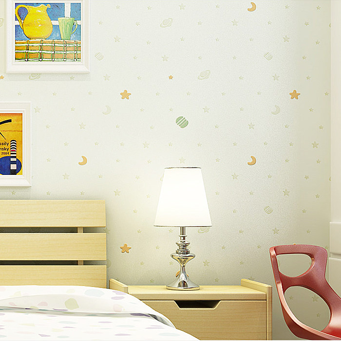 沪达墙纸星星月亮蓝色无纺布男孩女孩房间卧室卡通公主儿童房壁纸
