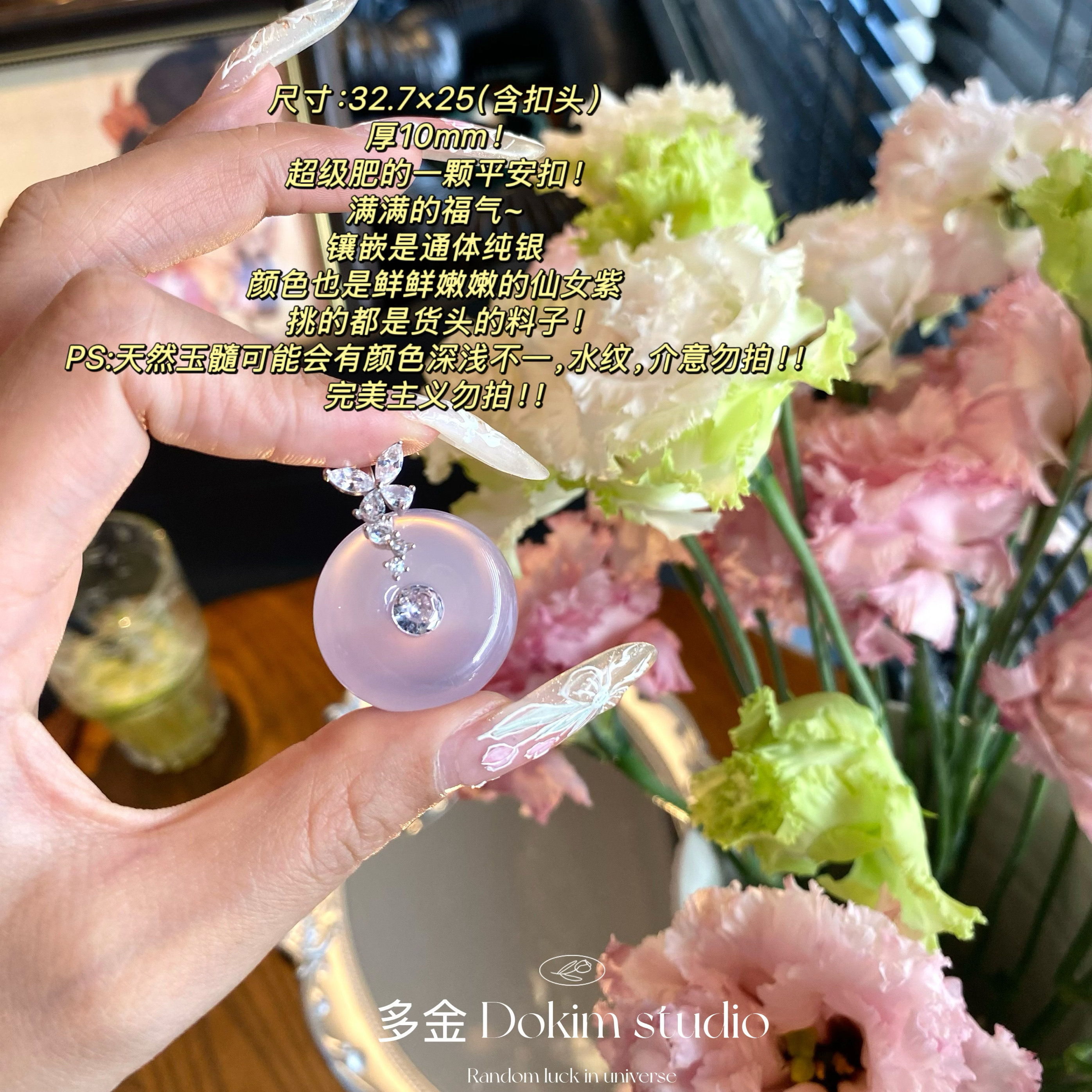 春日花园S925银天然紫玉髓平安扣吊坠新中式绝绝紫精致百搭项链