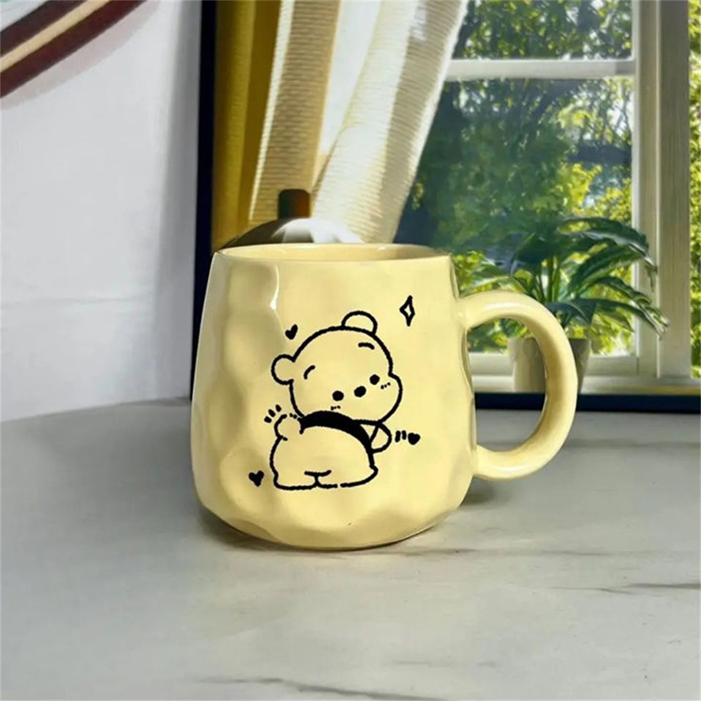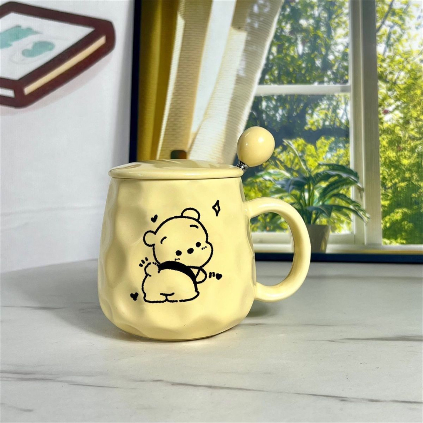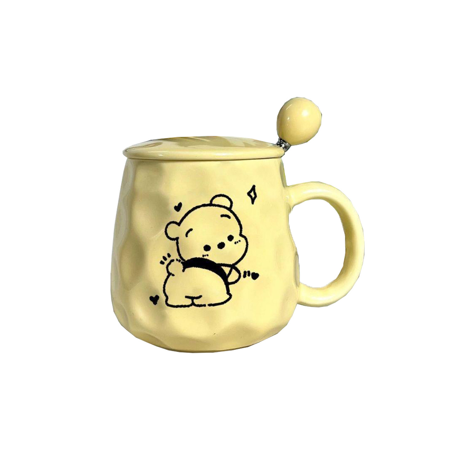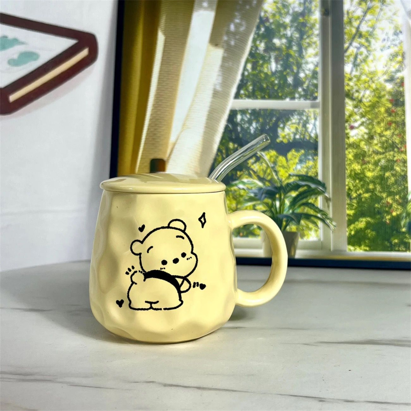 可爱小熊杯子黄色陶瓷马克杯带盖带勺带吸管喝水杯大学生宿舍冲泡