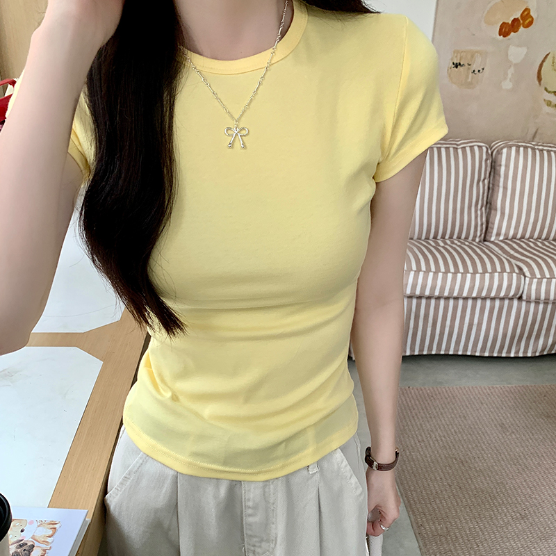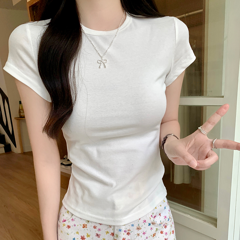 实价实拍基础纯棉正肩短袖t恤女夏季2024新款设计感体恤修身上衣