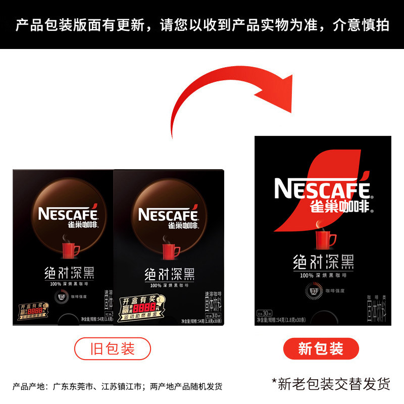 雀巢绝对深黑美式黑咖啡30条盒装冷泡提神燃减速溶纯咖啡官方正品