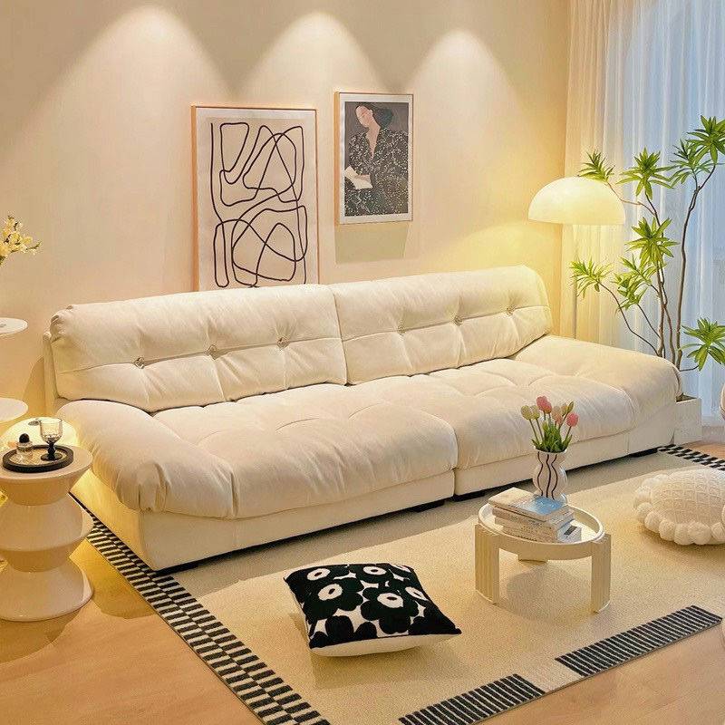 云朵沙发新款现代简约奶油风客厅小户型直排双三人位懒人布艺沙发