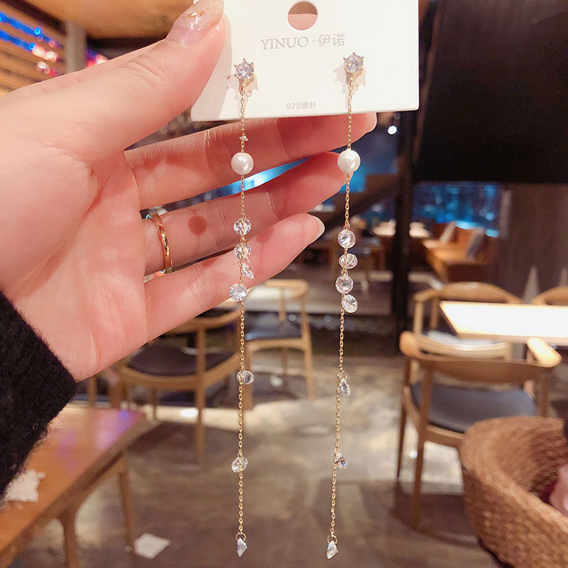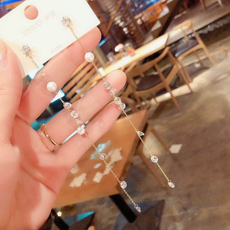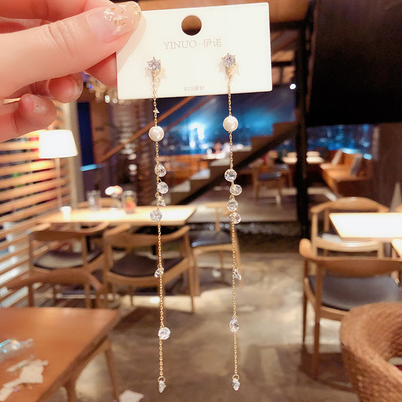 韩国气质水晶流苏长款耳环女个性百搭超仙冷淡风耳饰网红银针耳钉