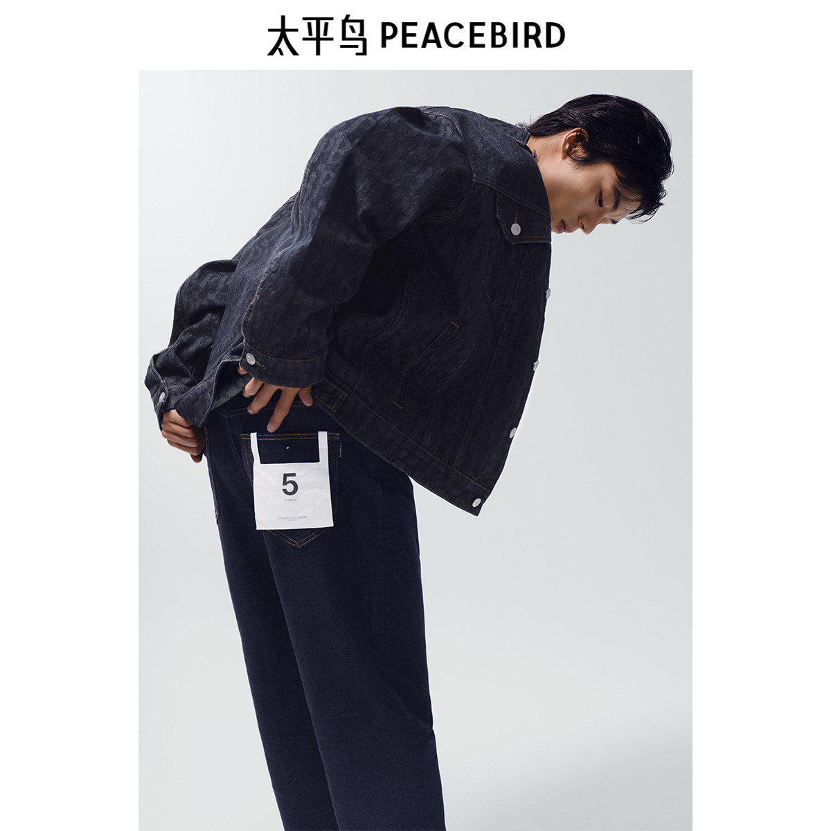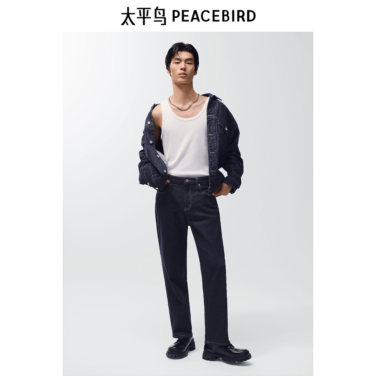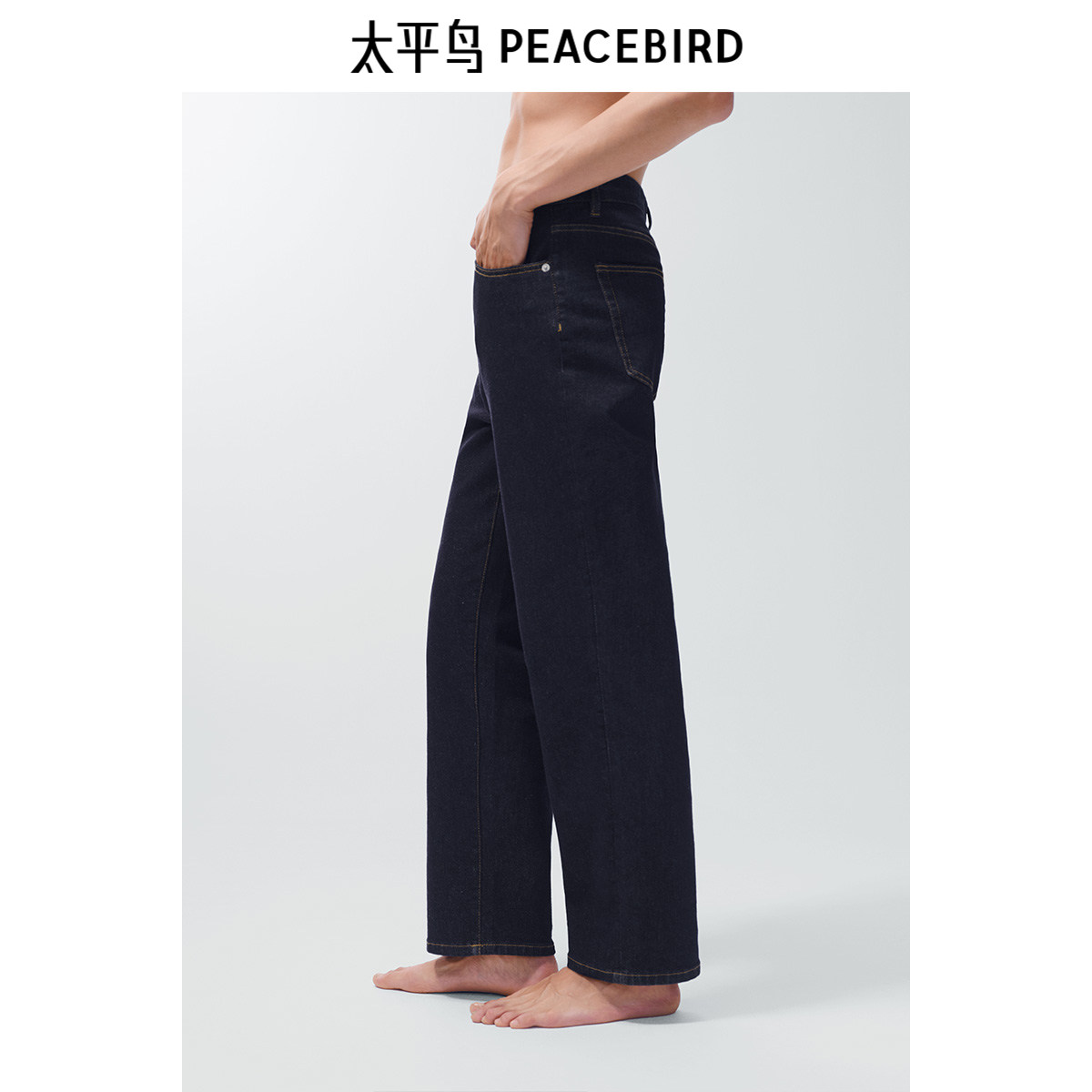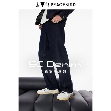 太平鸟男装原牛百搭牛仔裤秋男士潮牌水洗宽松直筒牛仔裤