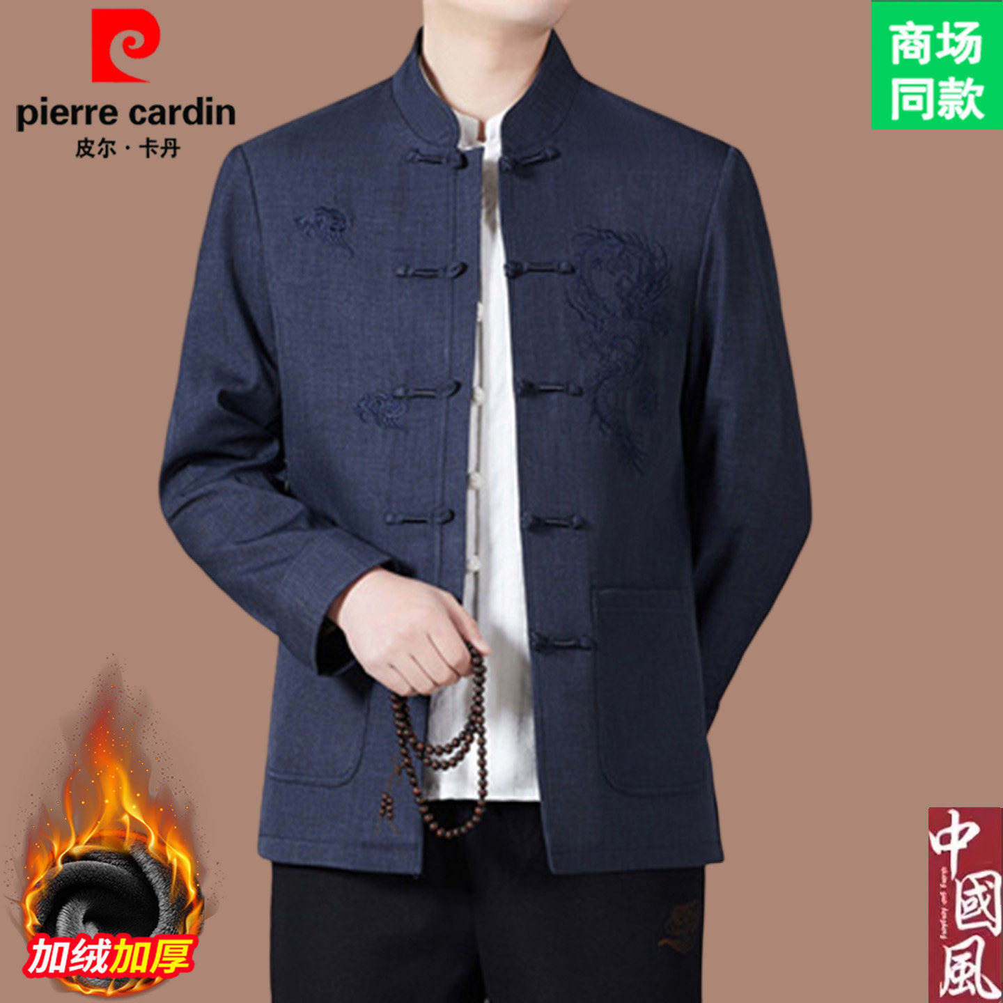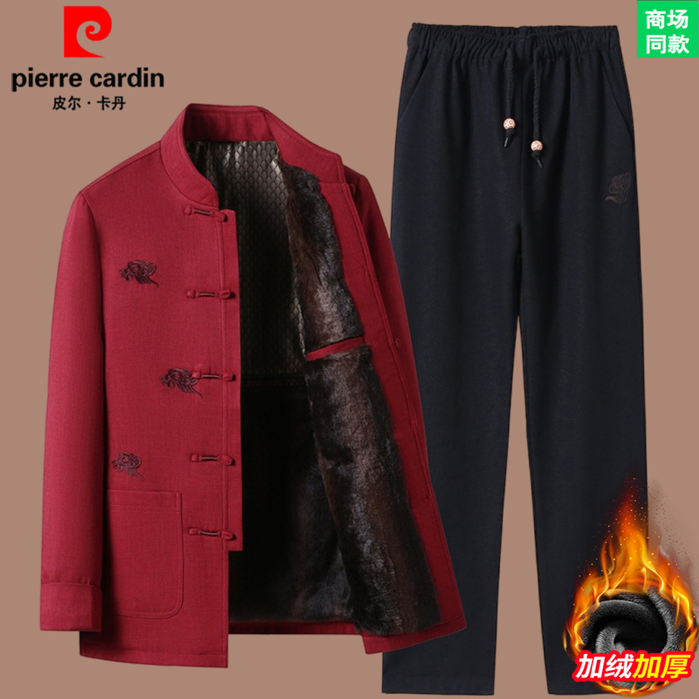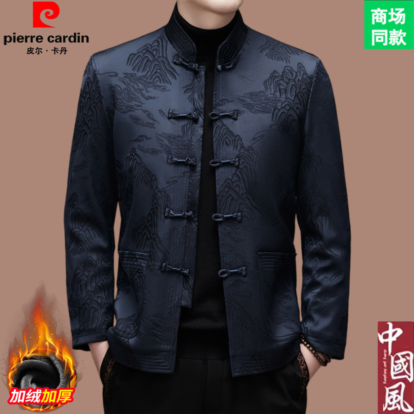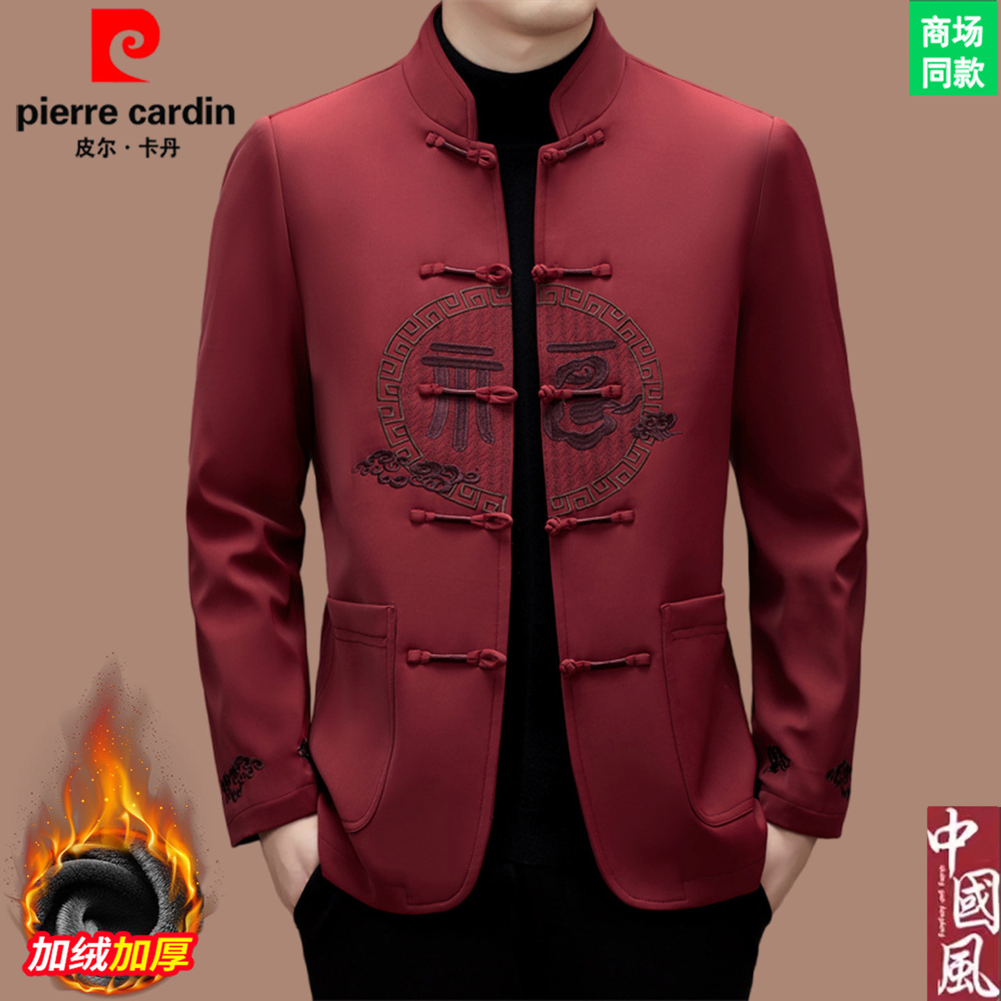 皮尔卡丹高端新中式唐装男士中国风加绒加厚外套婚宴生日礼服套装
