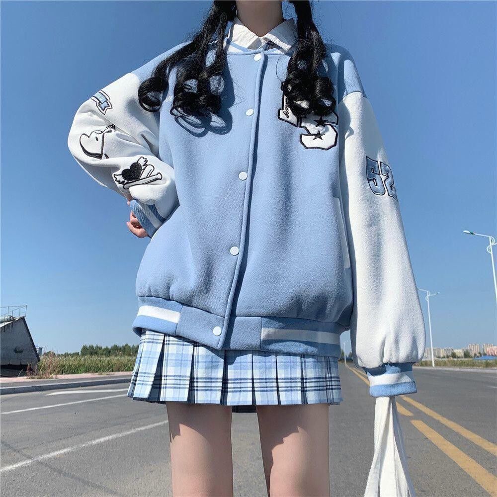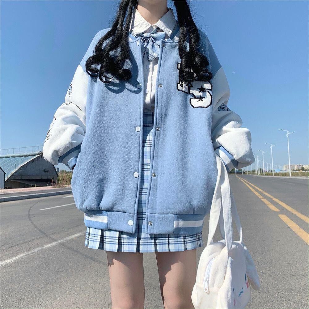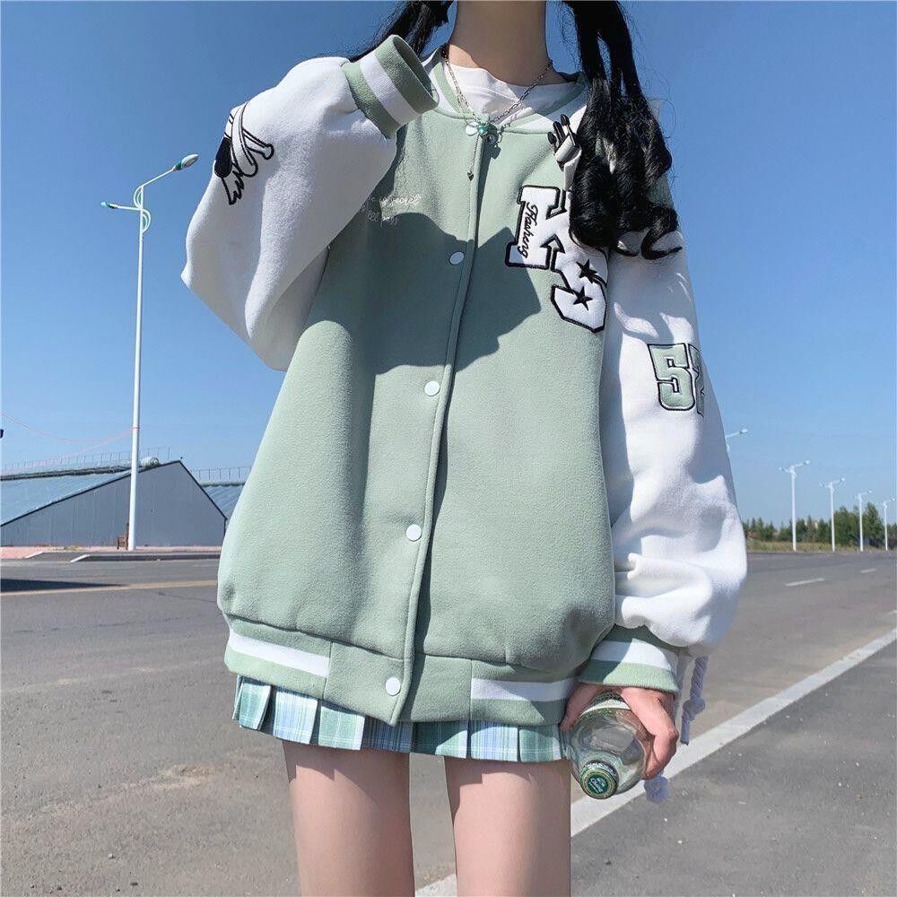 棒球服外套少女春秋装大童撞色拼接刺绣卫衣初中高中学生夹克开衫