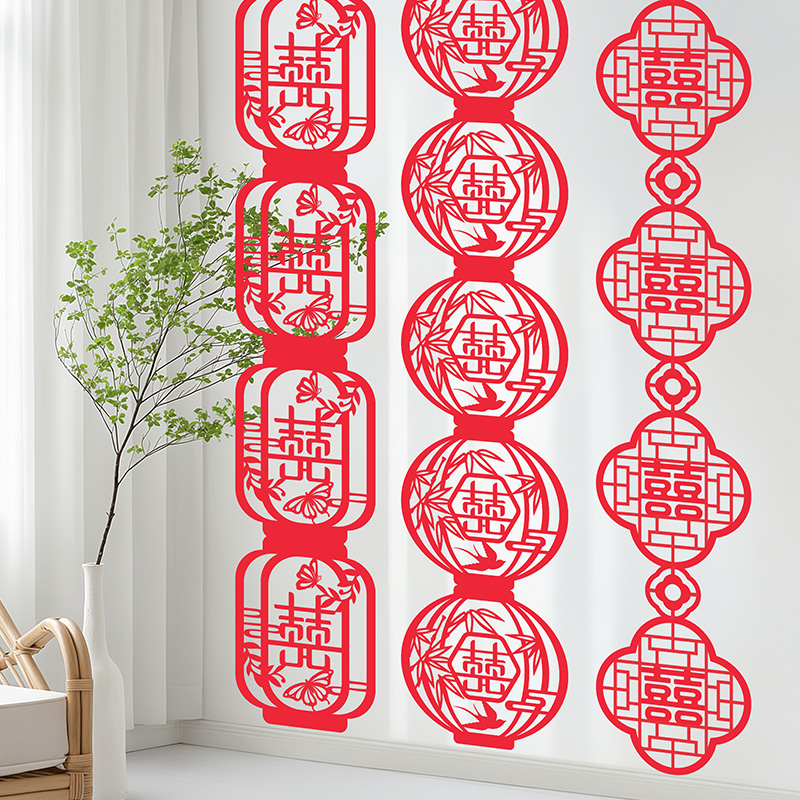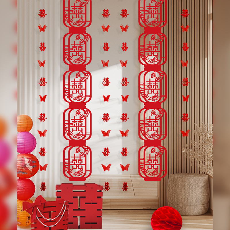 灯笼无纺布长条喜字帘婚房布置装饰挂饰订婚背景拍照道具