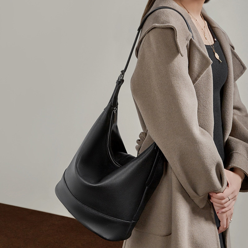 头层牛皮水桶包女腋下包2025新款欧美真皮女包通勤手提单肩斜跨包