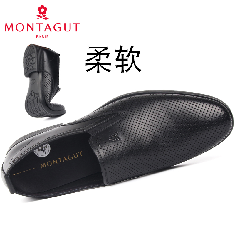 梦特娇男鞋2025夏季新款商务正装男士镂空透气办公休闲套脚凉皮鞋
