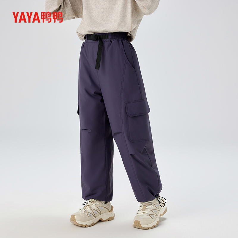 鸭鸭儿童羽绒裤女2025冬季新款加厚保暖中大童工装裤男童休闲长裤