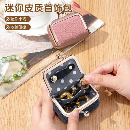 迷你皮质真皮小巧首饰包简约时尚轻奢戒指项链耳环迷你精致饰品盒