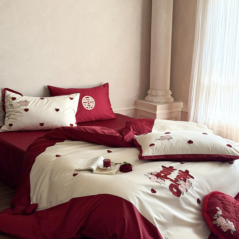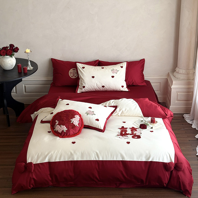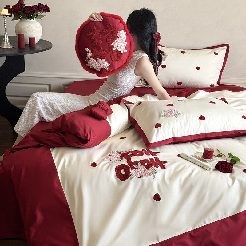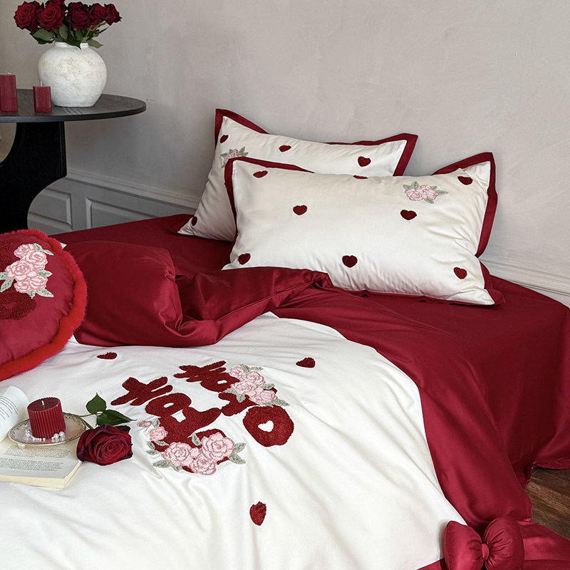 小爱心玫瑰100S长绒棉全棉结婚四件套被套婚庆床上用品