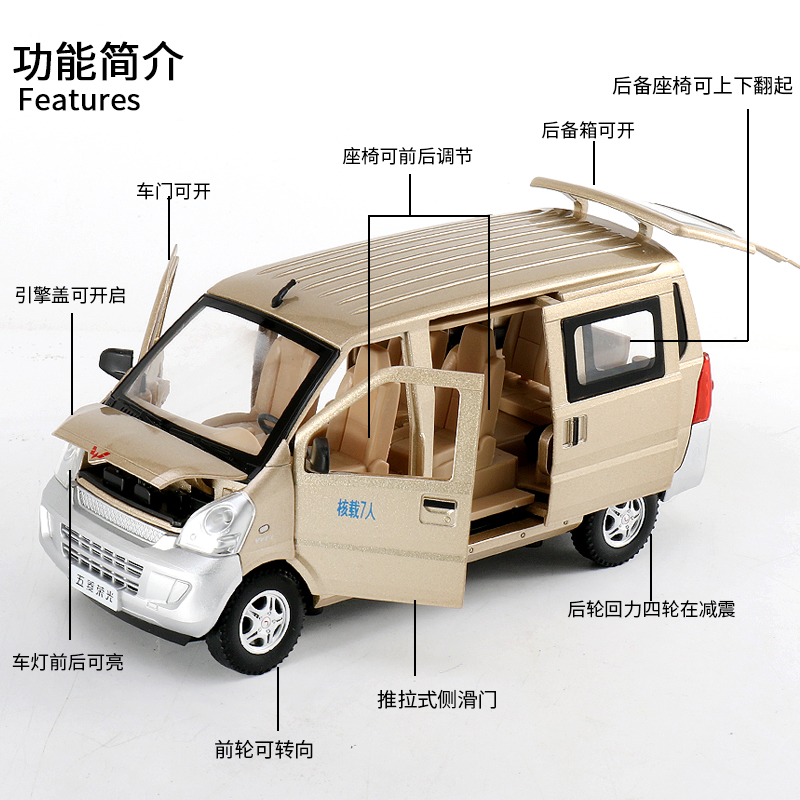 仿真五菱之光面包车合金汽车模型