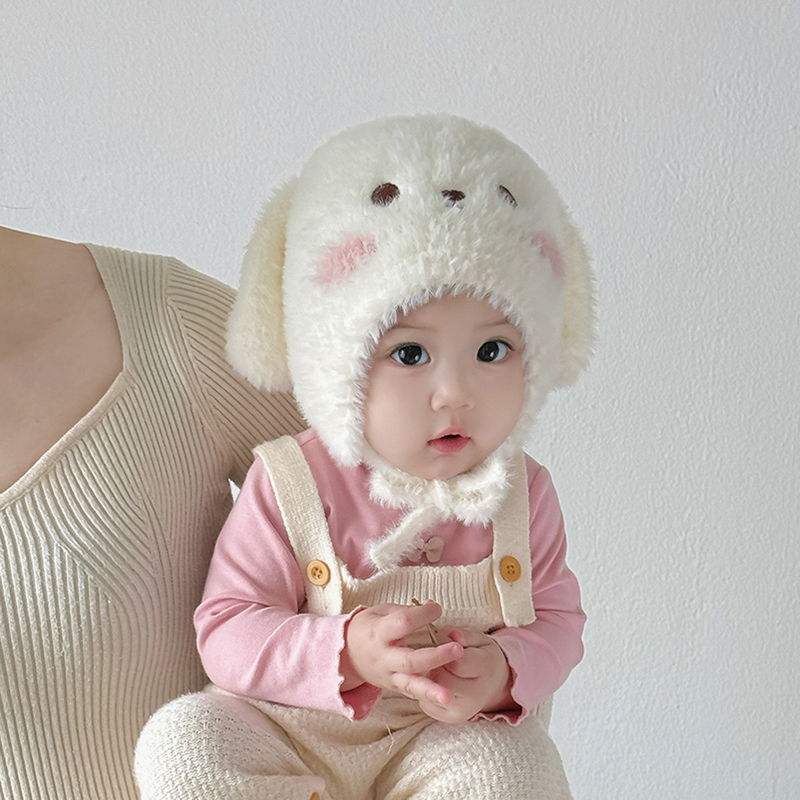 儿童帽子秋冬季保暖针织加厚毛线帽女宝宝可爱卡通防风毛绒护耳帽