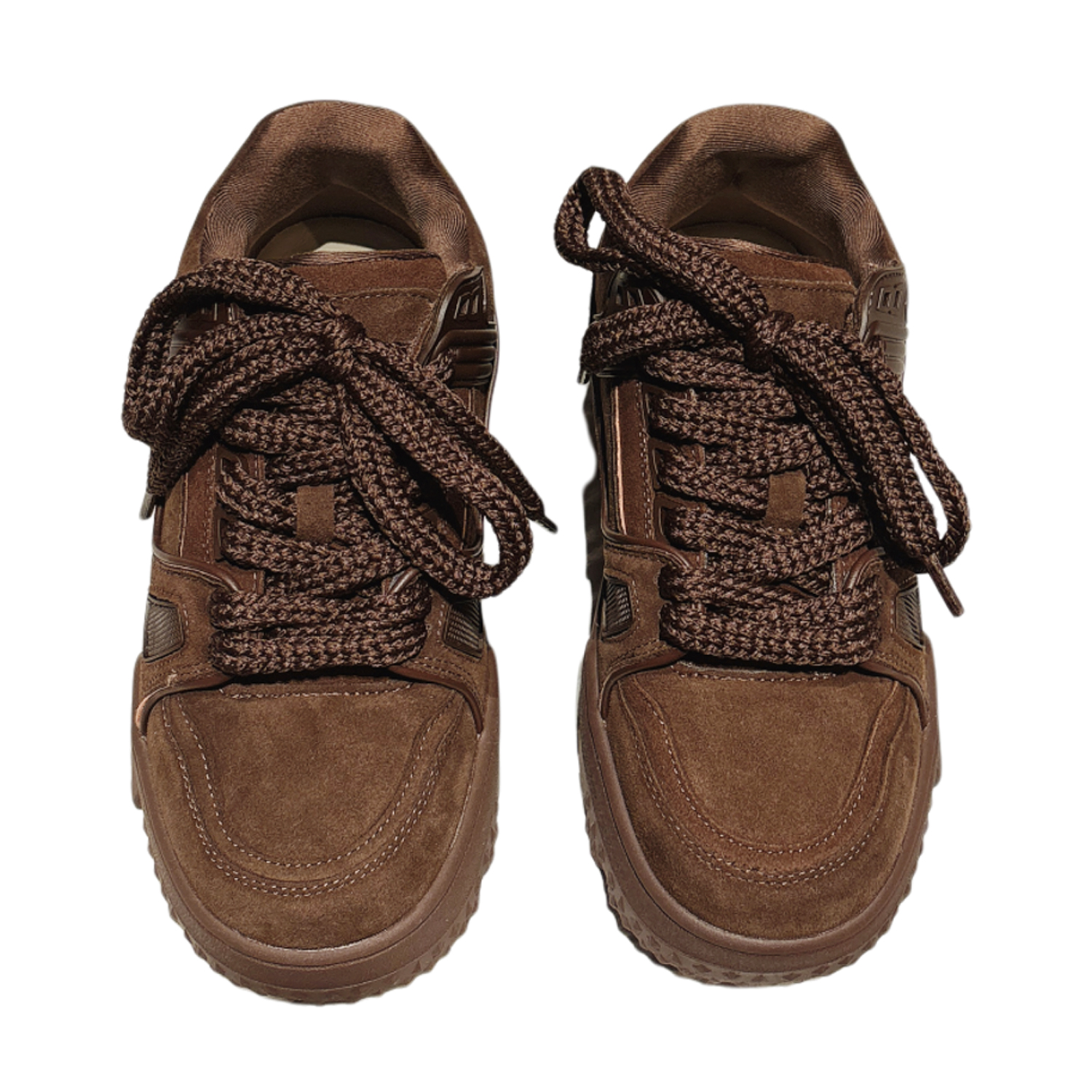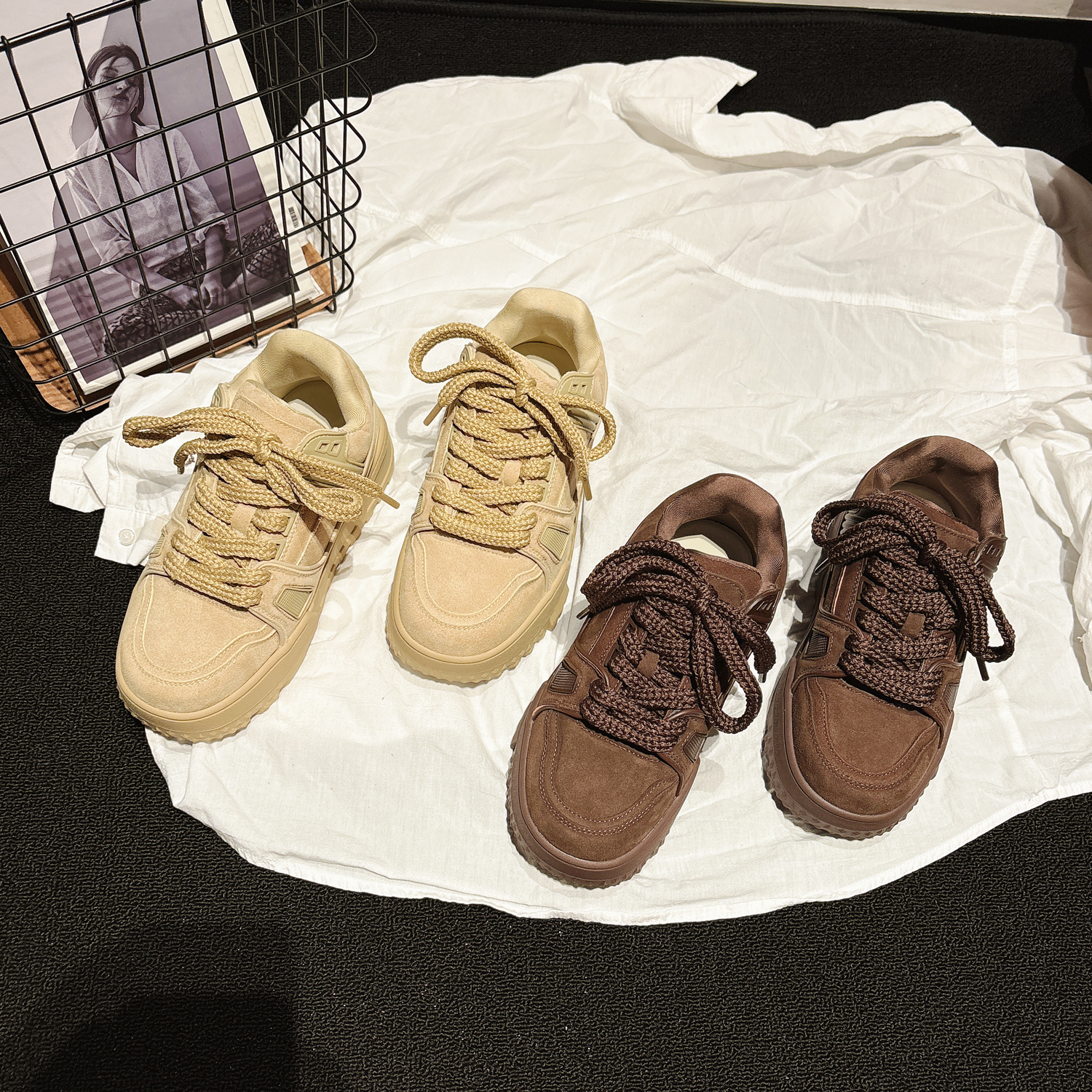 美拉德~真皮厚底系带蠢萌面包鞋女2025秋新款休闲板鞋ins学生女鞋