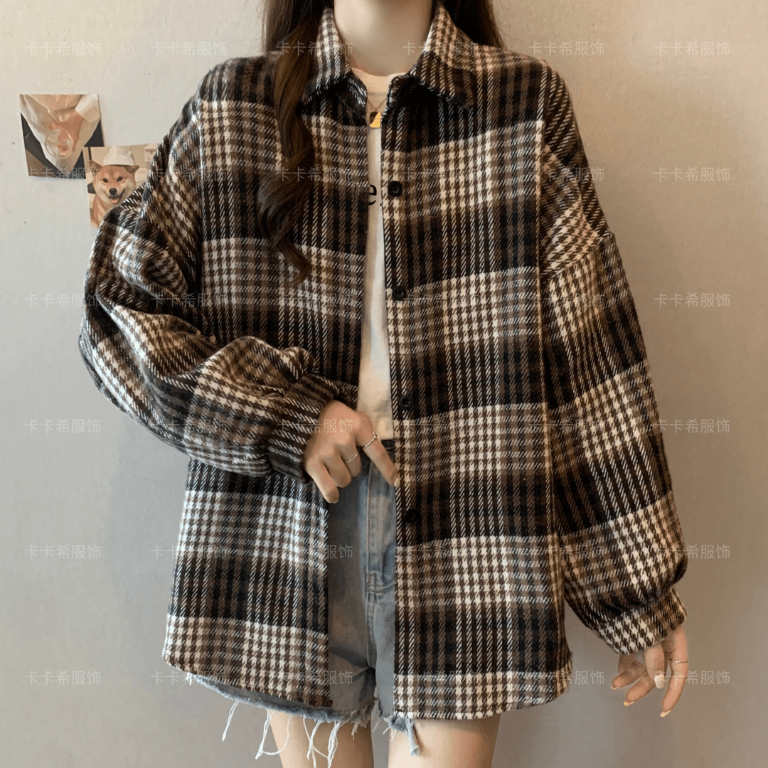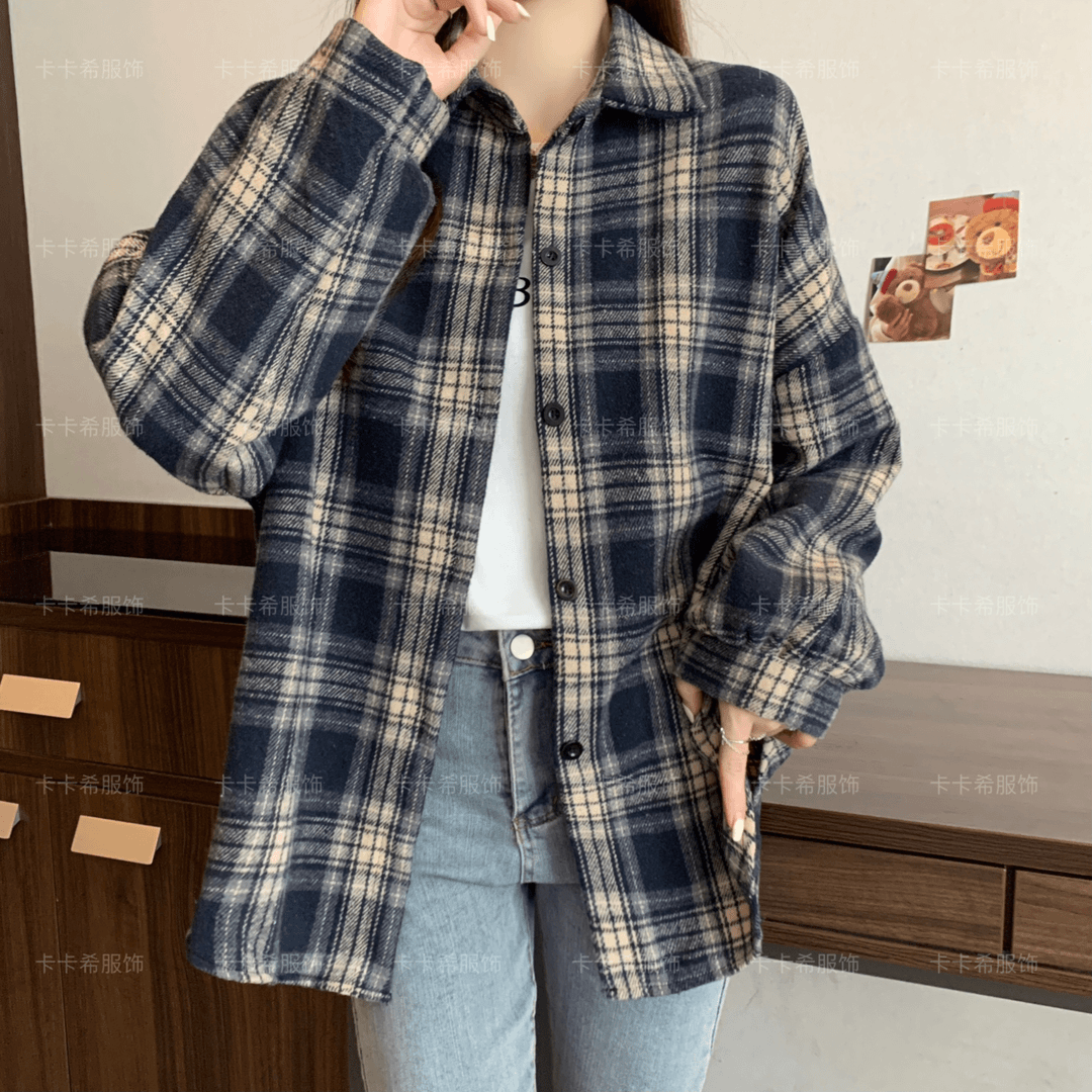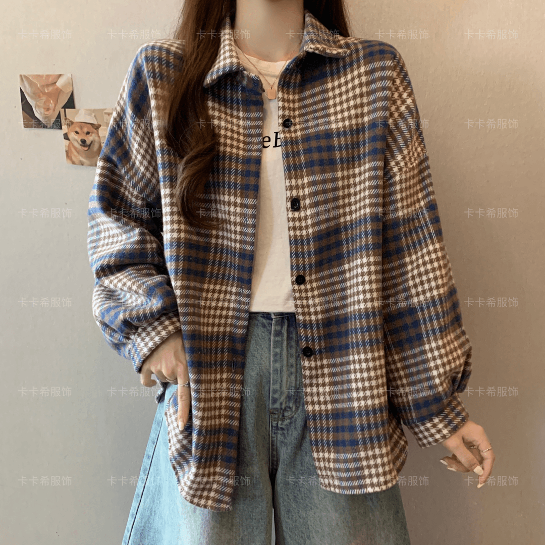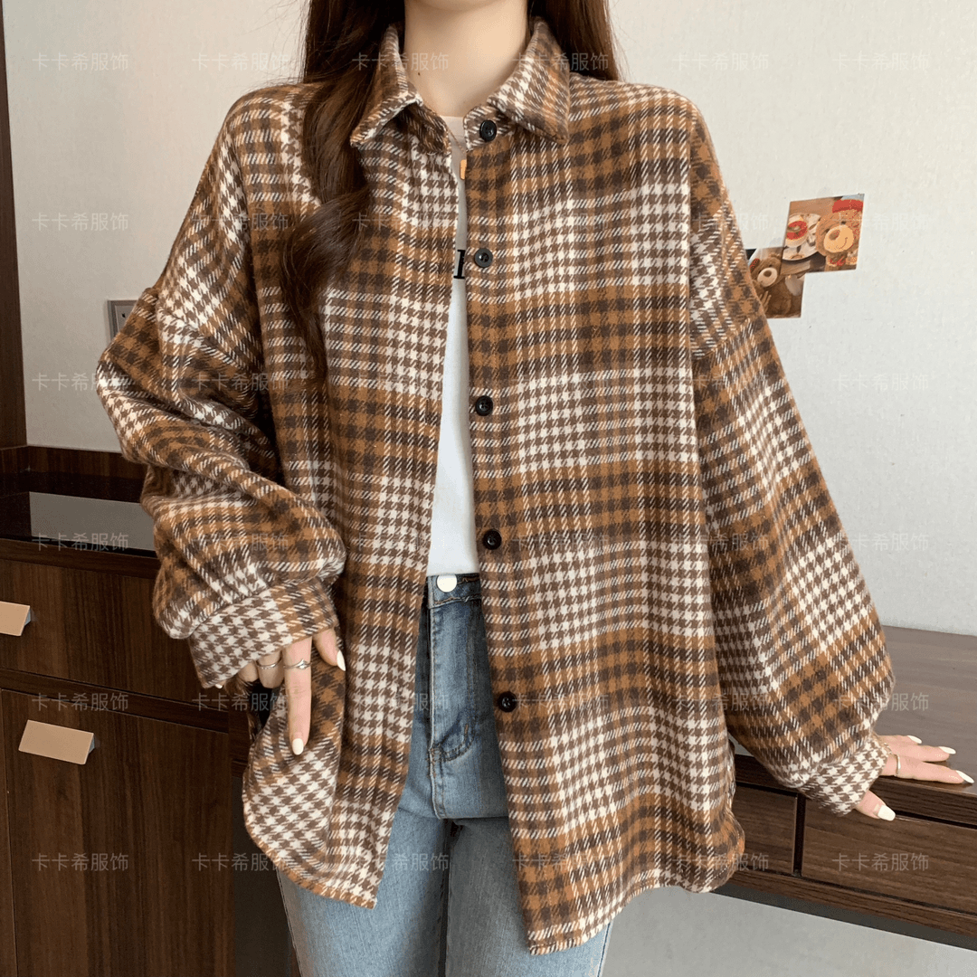 复古加厚磨毛格子衬衫女春秋冬新款百搭设计感宽松外套休闲上衣