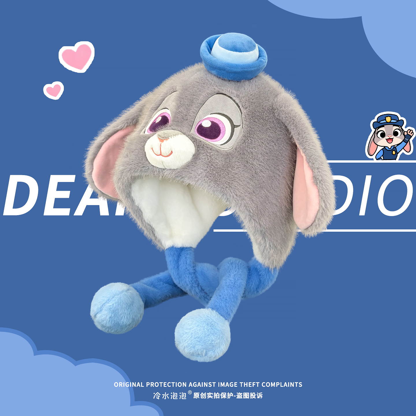 迪士尼正版授权朱迪毛绒护耳帽子女冬季户外保暖耳朵会动雷锋帽潮
