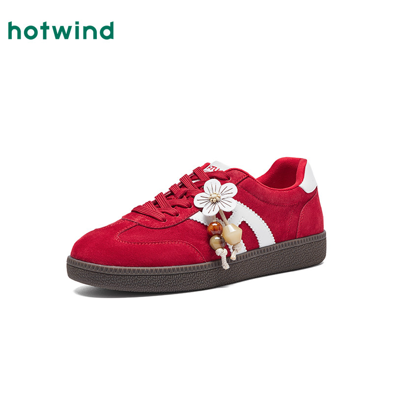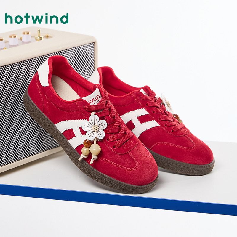 热风红色麻薯德训鞋女款2026年春季新款百搭休闲鞋平底板鞋女鞋子