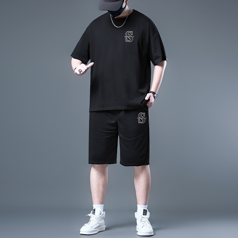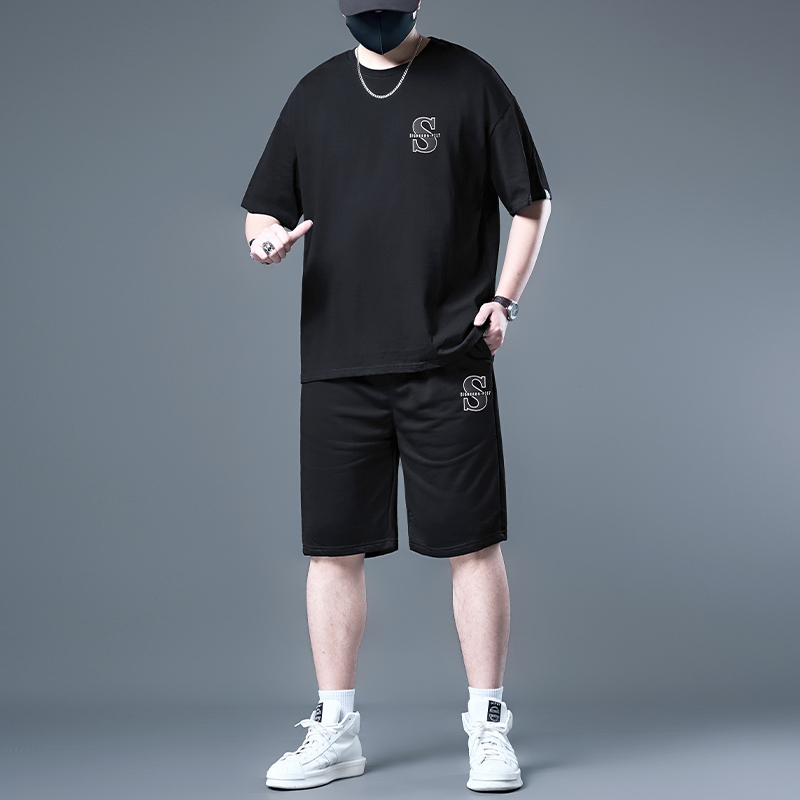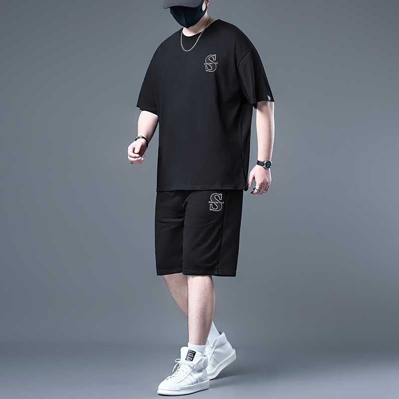 大码短袖男t恤夏季男士加肥加大胖子男装男款运动短裤套装夏