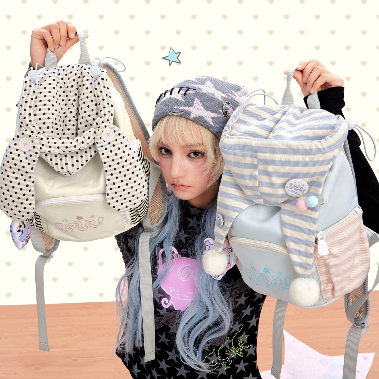 LOLA DESIGN轻亚风帽子针织双肩包 韩系少女大容量旅游轻便小背包