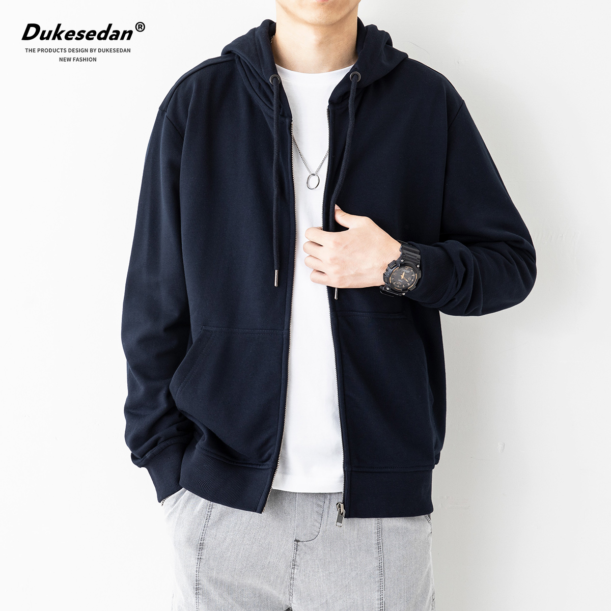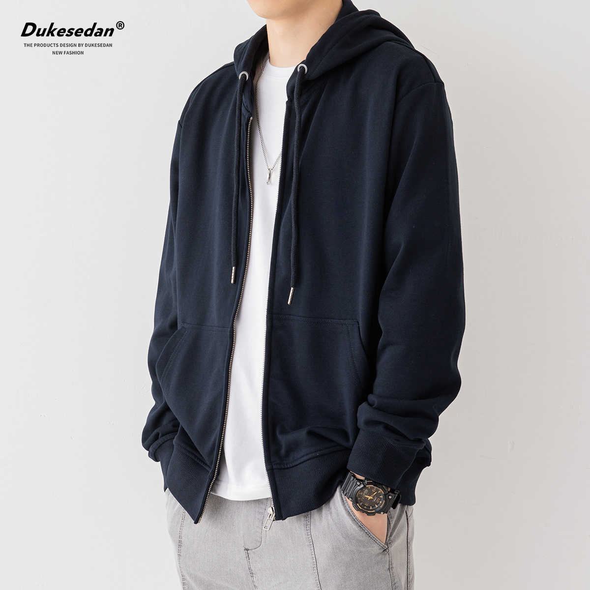 拉链连帽卫衣男宽松潮牌开衫外套