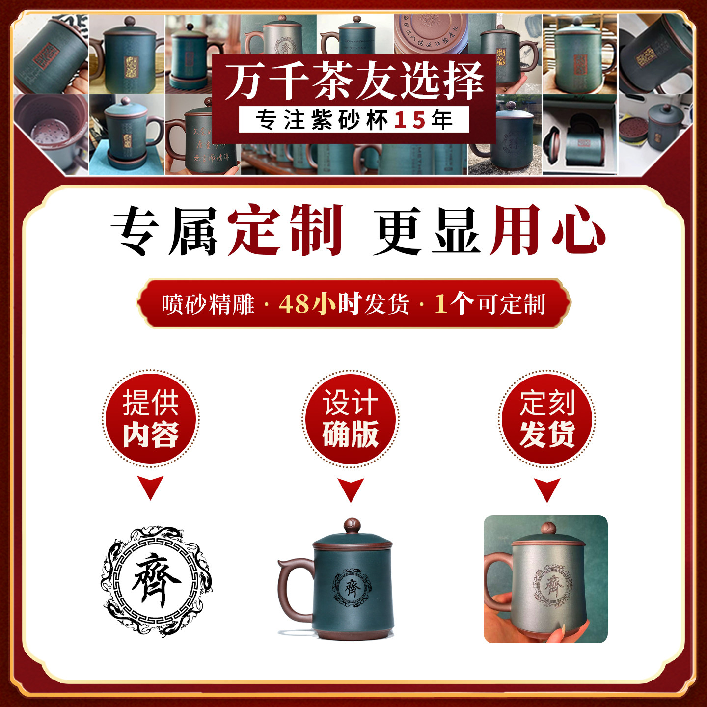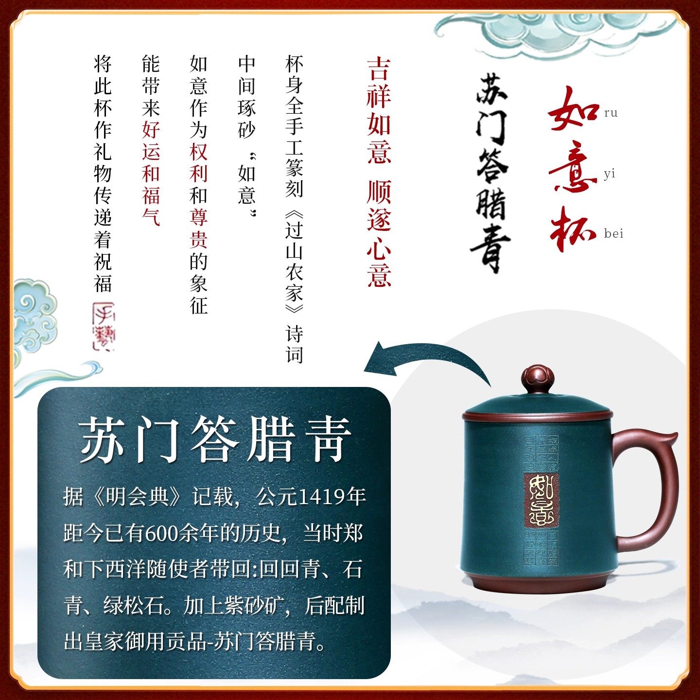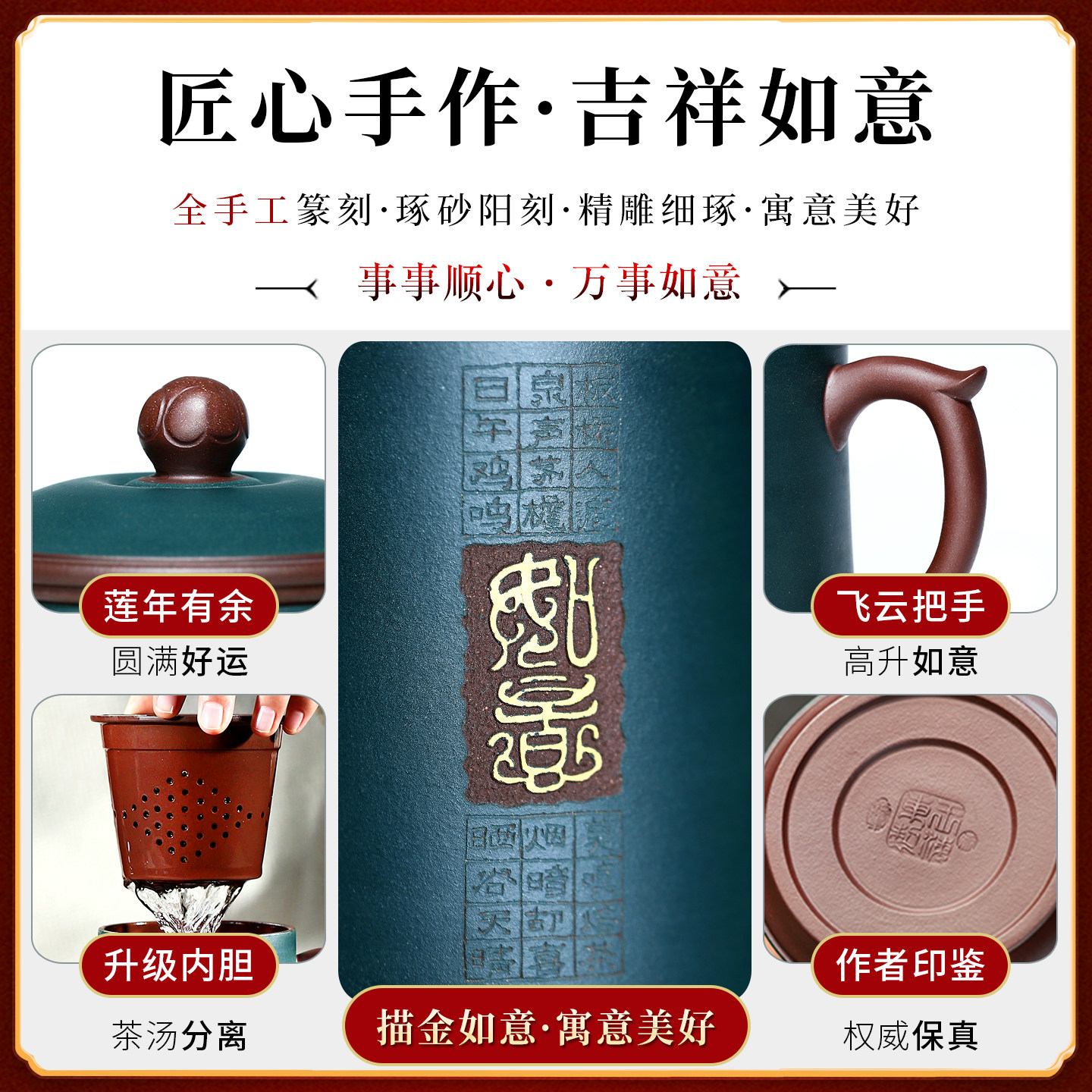 杯中乾坤纯手工紫砂刻绘茶杯如意