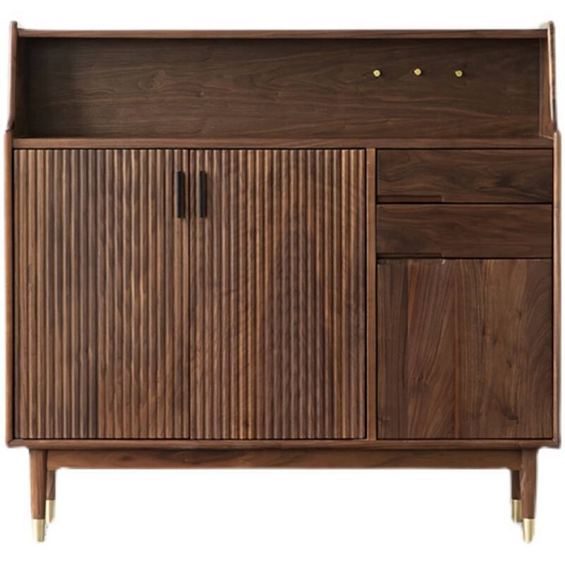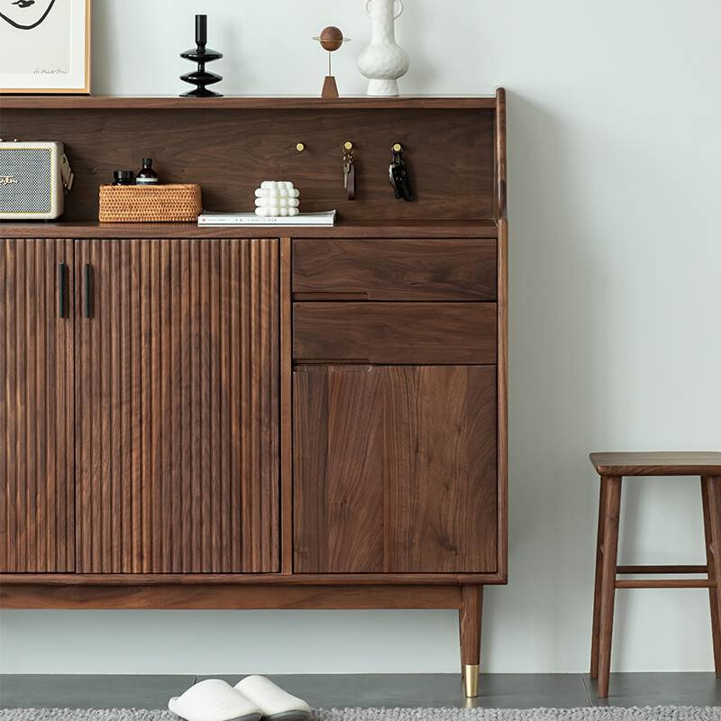 北欧黑胡桃木入户鞋柜现代简约全实木玄关柜轻奢对开门极简收纳柜