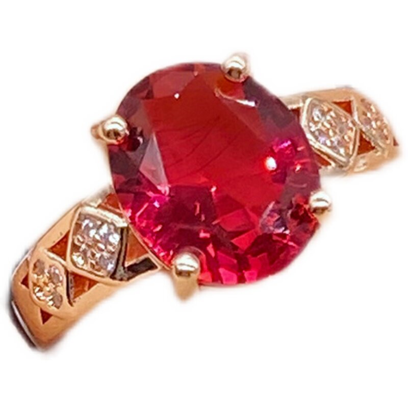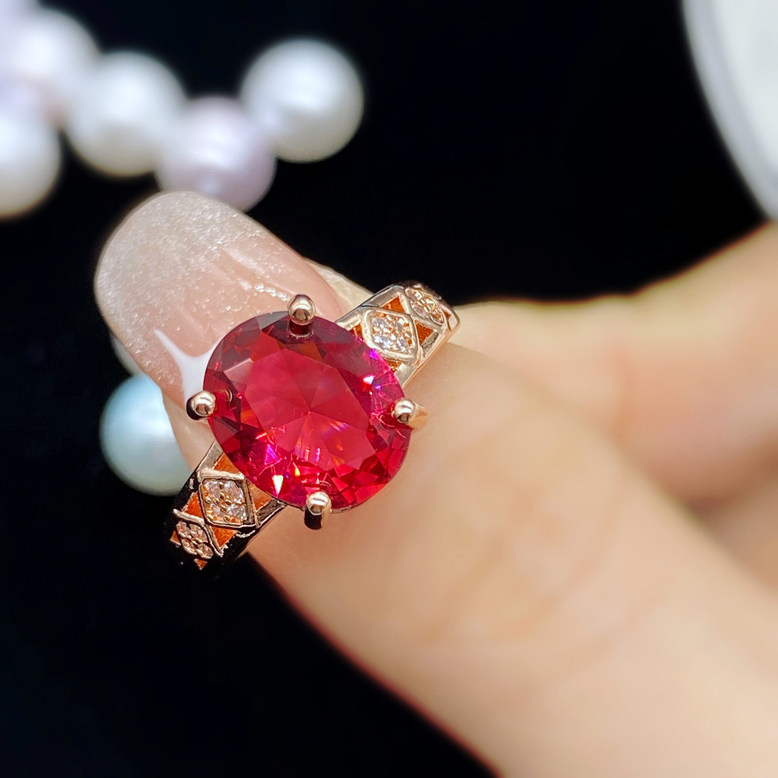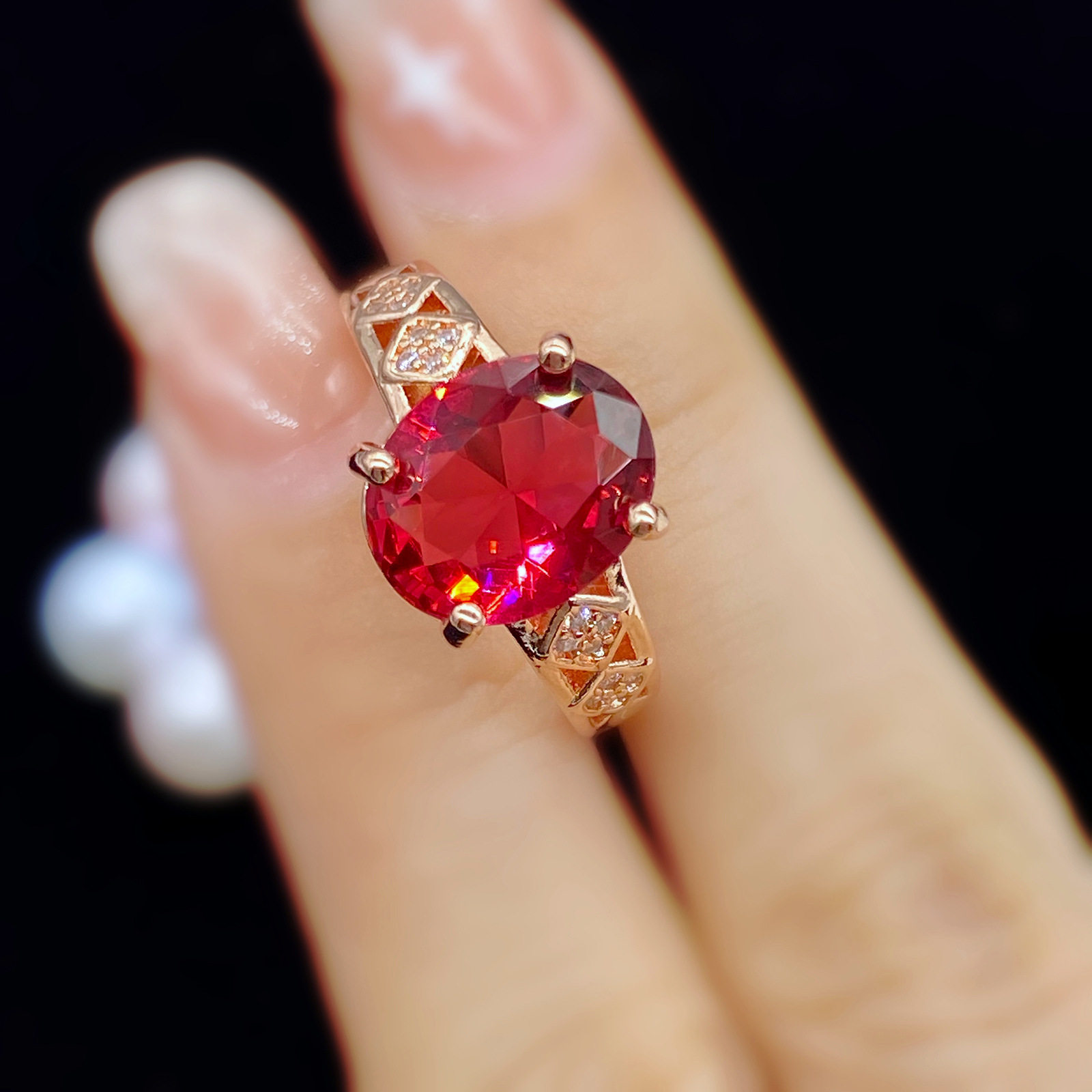 欧美高端珠宝女士简约甜美气质结婚钻戒仿真红碧玺镀玫瑰金戒指