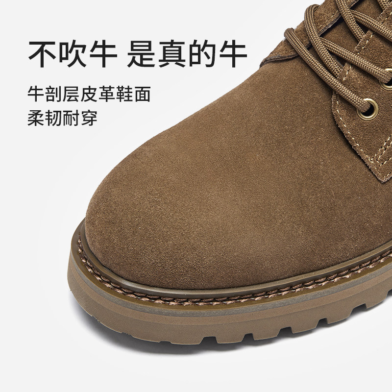 热风男鞋2026年春季新款男士厚底休闲工装鞋百搭复古棕色鞋子潮
