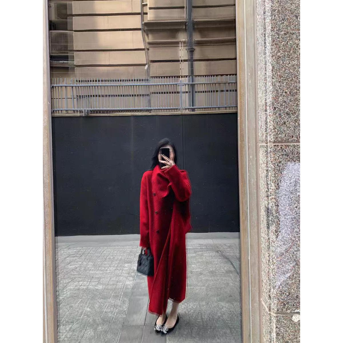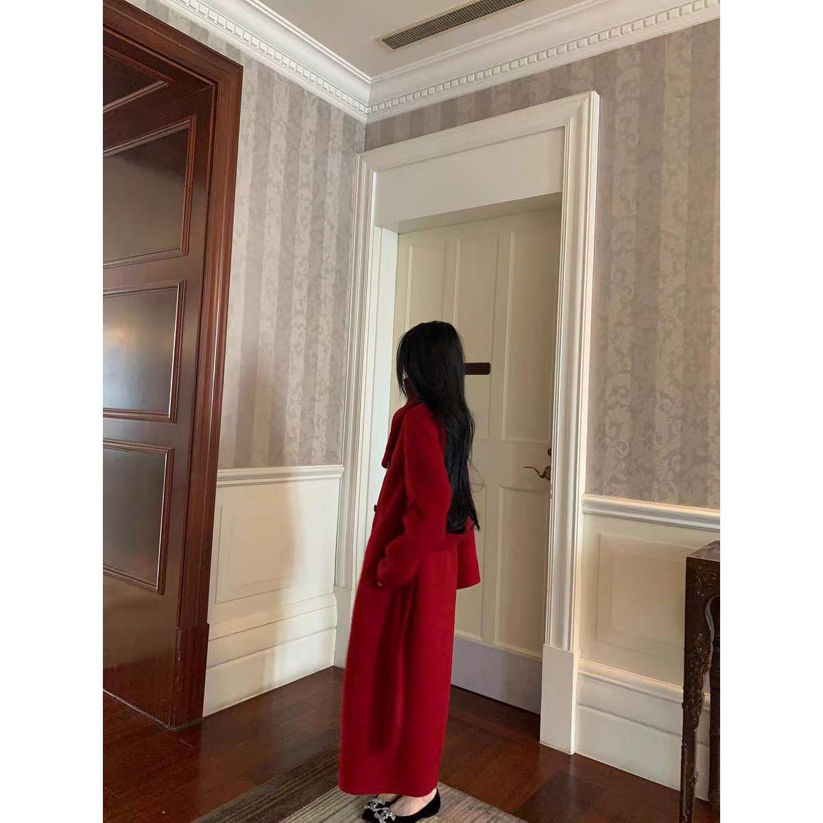 红色外套节日战袍法式富家千金高级感毛呢大衣女