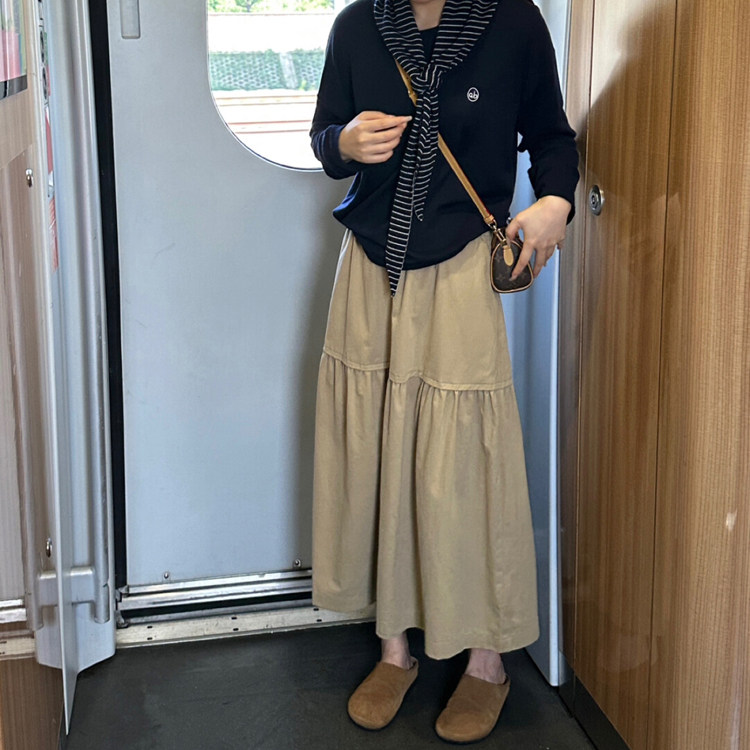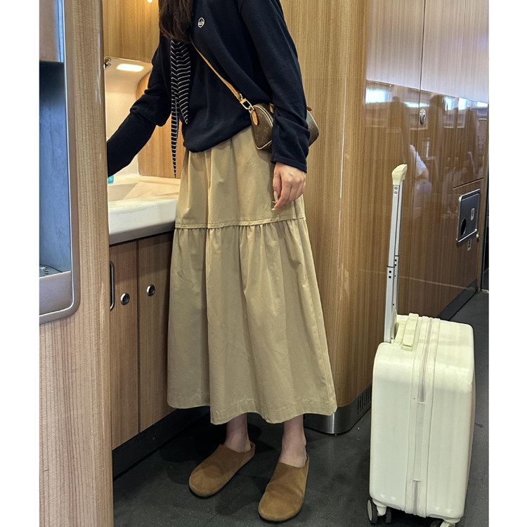卡其色a字半身裙女大码秋季2025新款胖mm显瘦中长款拼接花苞伞裙