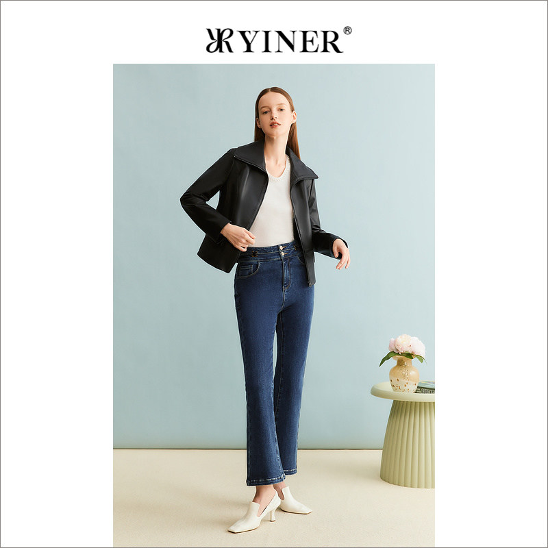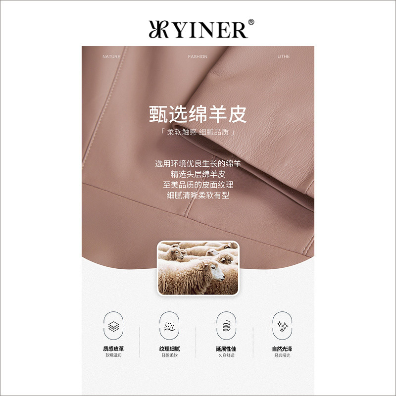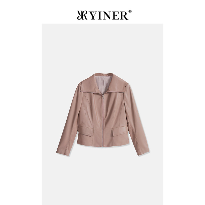 YINER音儿专选女装秋季时尚气质大翻领绵羊真皮皮衣夹克外套