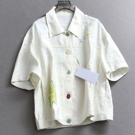 时尚印花短款宽松轻薄透气翻领夏季新款减龄百搭短袖女小外套X755