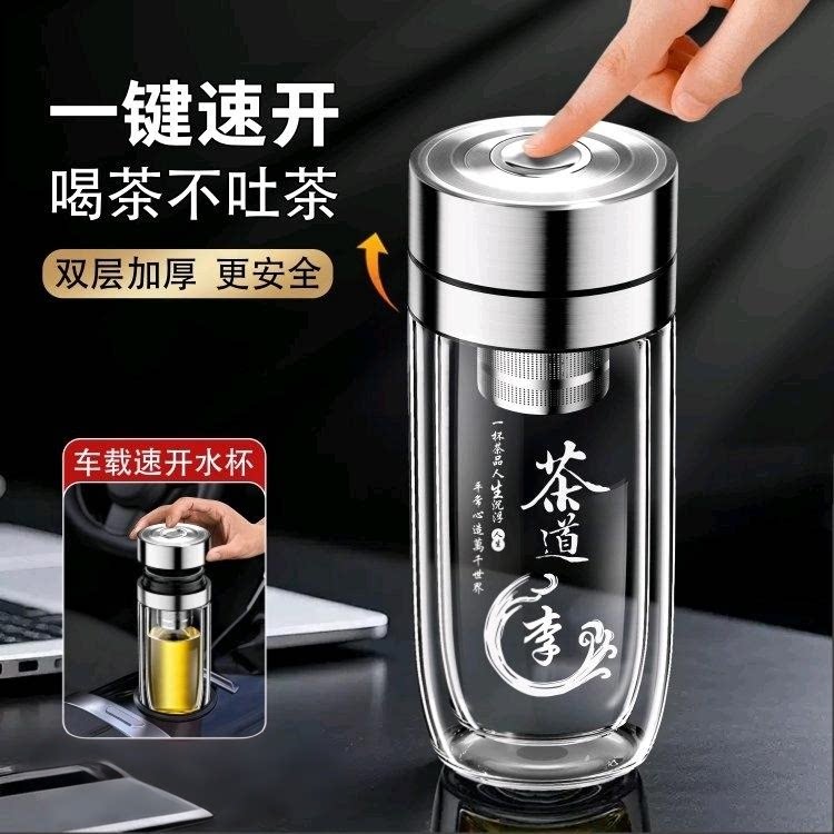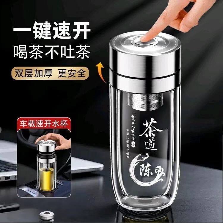 鹅蛋双层玻璃杯车载高档水杯一键速开盖泡茶杯子车载便携定制刻字