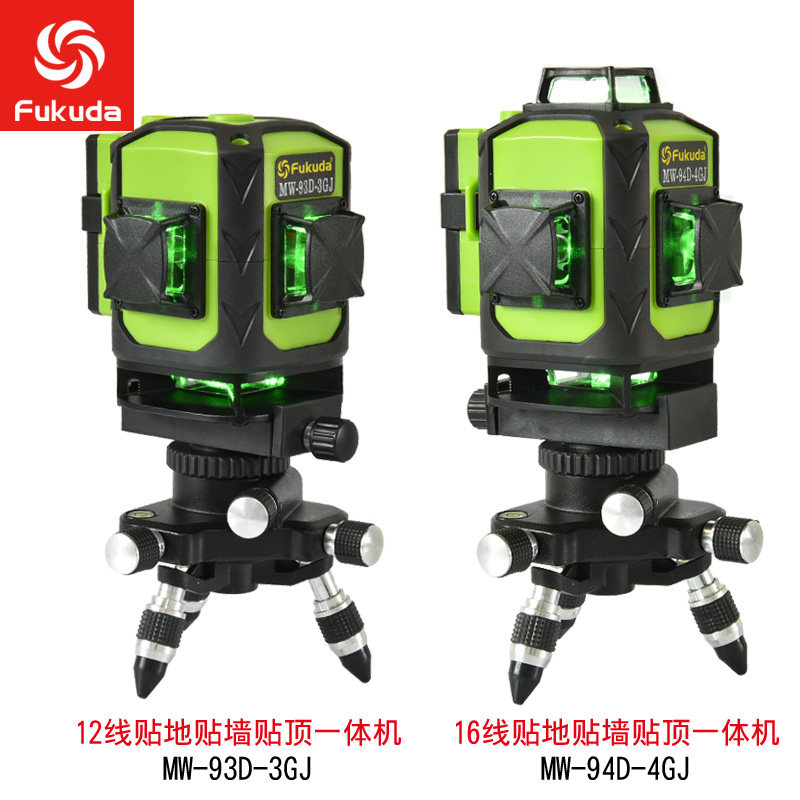 福田激光水平仪12线16蓝绿光93D贴地贴墙扫平仪高精度铺地砖红外