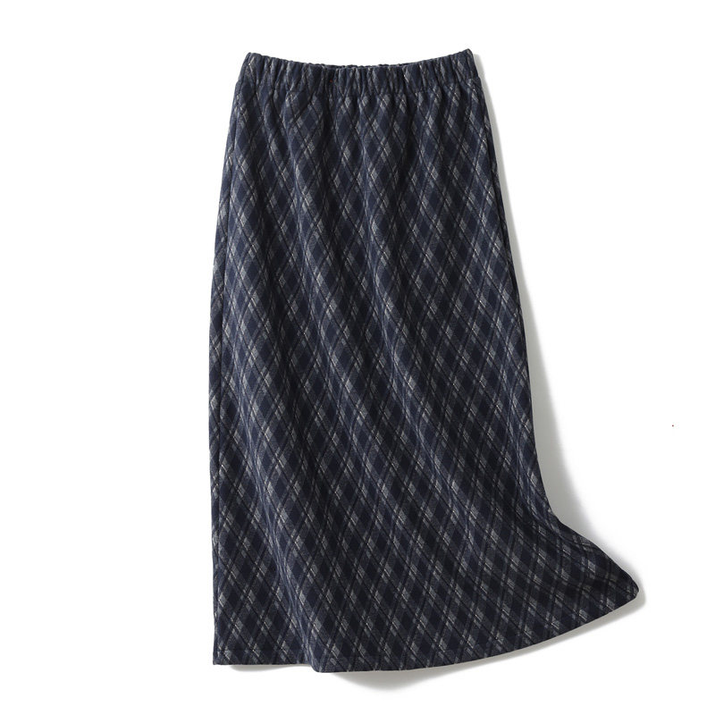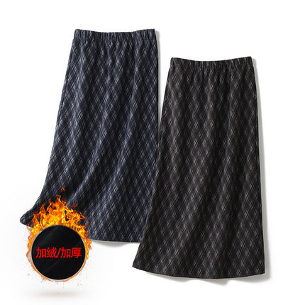 阿月大码半身裙胖MM宽松A字型格子加绒长裙200斤女装加厚冬装保暖