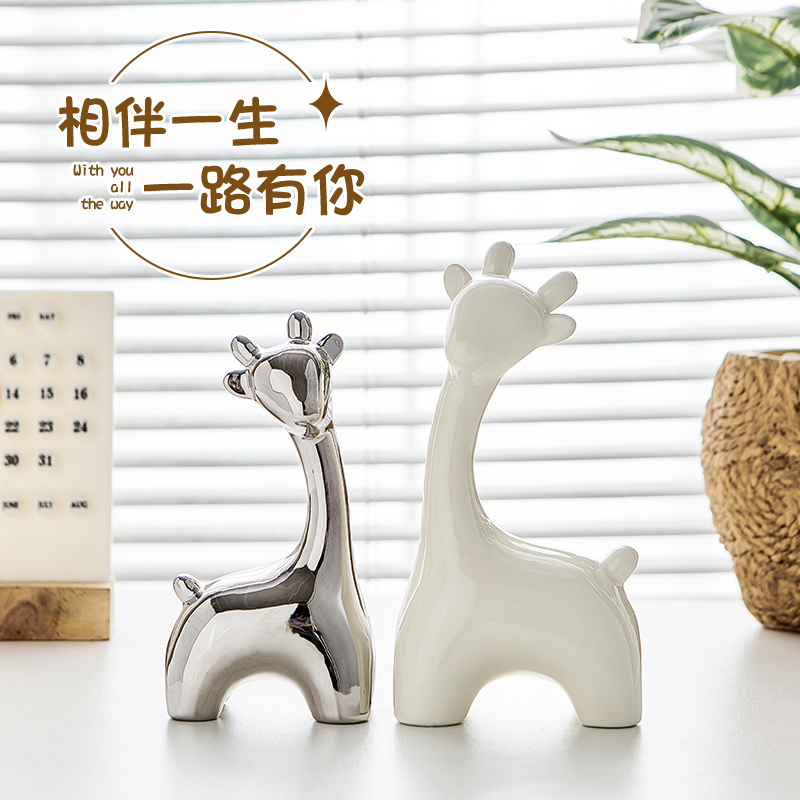 简约小众陶瓷小鹿摆件家居装饰品轻奢高级电视柜客厅酒柜装饰摆件
