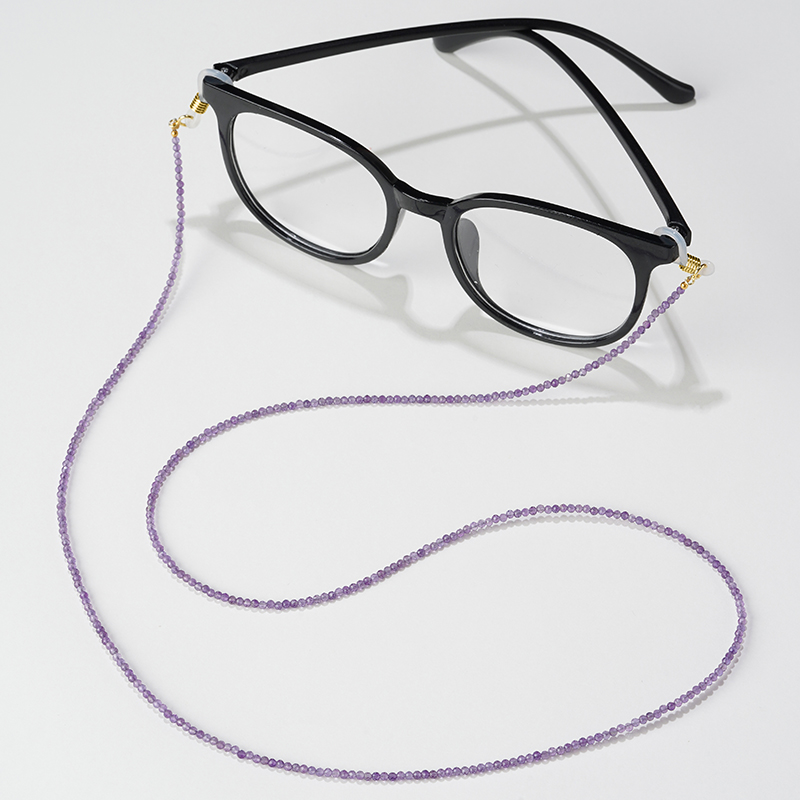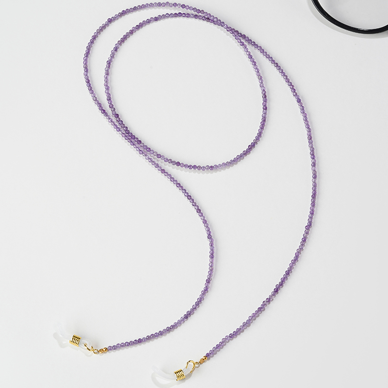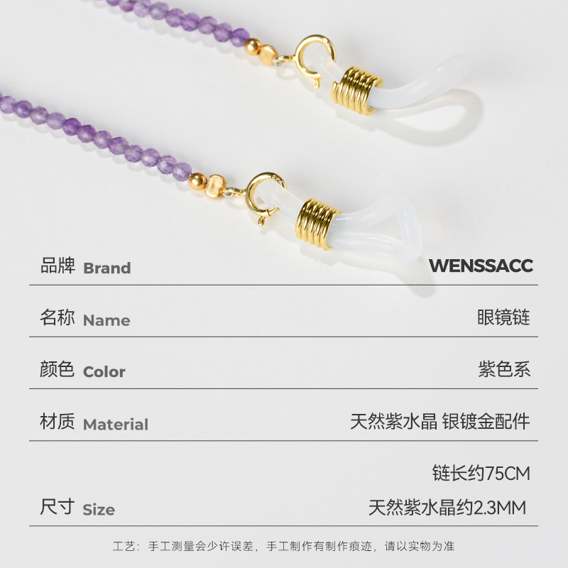 WENSSACC手工眼镜链2mm天然极细紫水晶串珠墨镜口罩耳机挂脖挂链