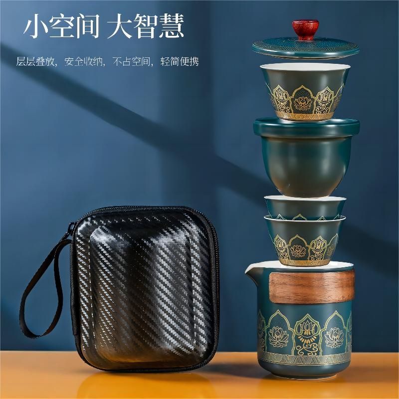 快客杯一壶露营陶瓷便携旅行茶具套装功夫户外泡茶壶出差旅游茶杯