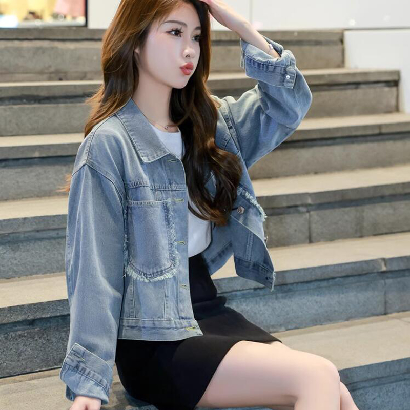 复古港风休闲牛仔外套女春秋上衣